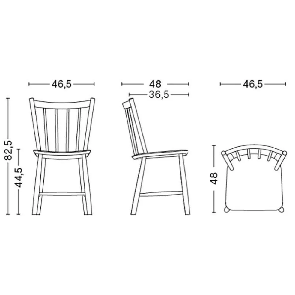 Der J41 Stuhl Eiche ist 46,5 cm breit. Die Höhe beträgt 82,5 cm und die Tiefe 48 cm. Das Modell hat eine Sitzhöhe von 44,5 cm. Das Gewicht des Stuhls beträgt 6,2 kg. Unter Zubehör kann man Sitzkissen in verschiedenen Farben bestellen, die genau zum Modell passen.