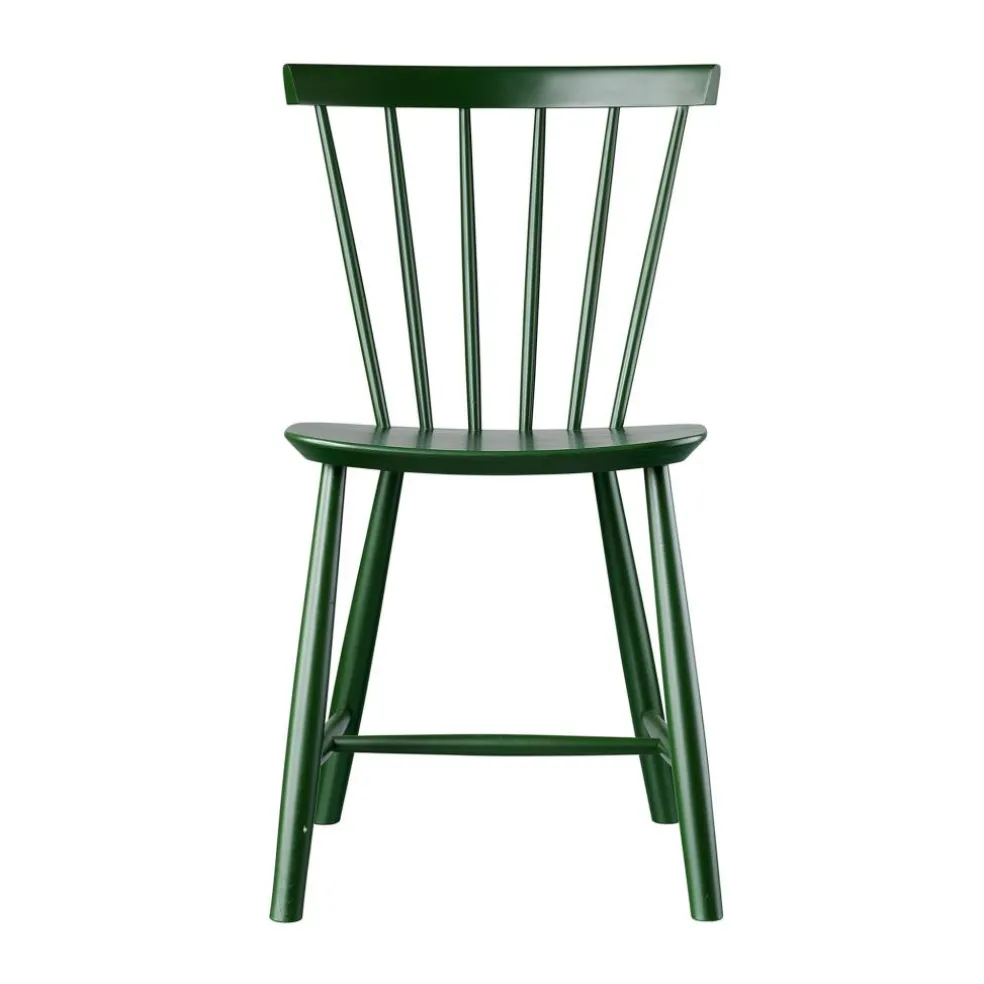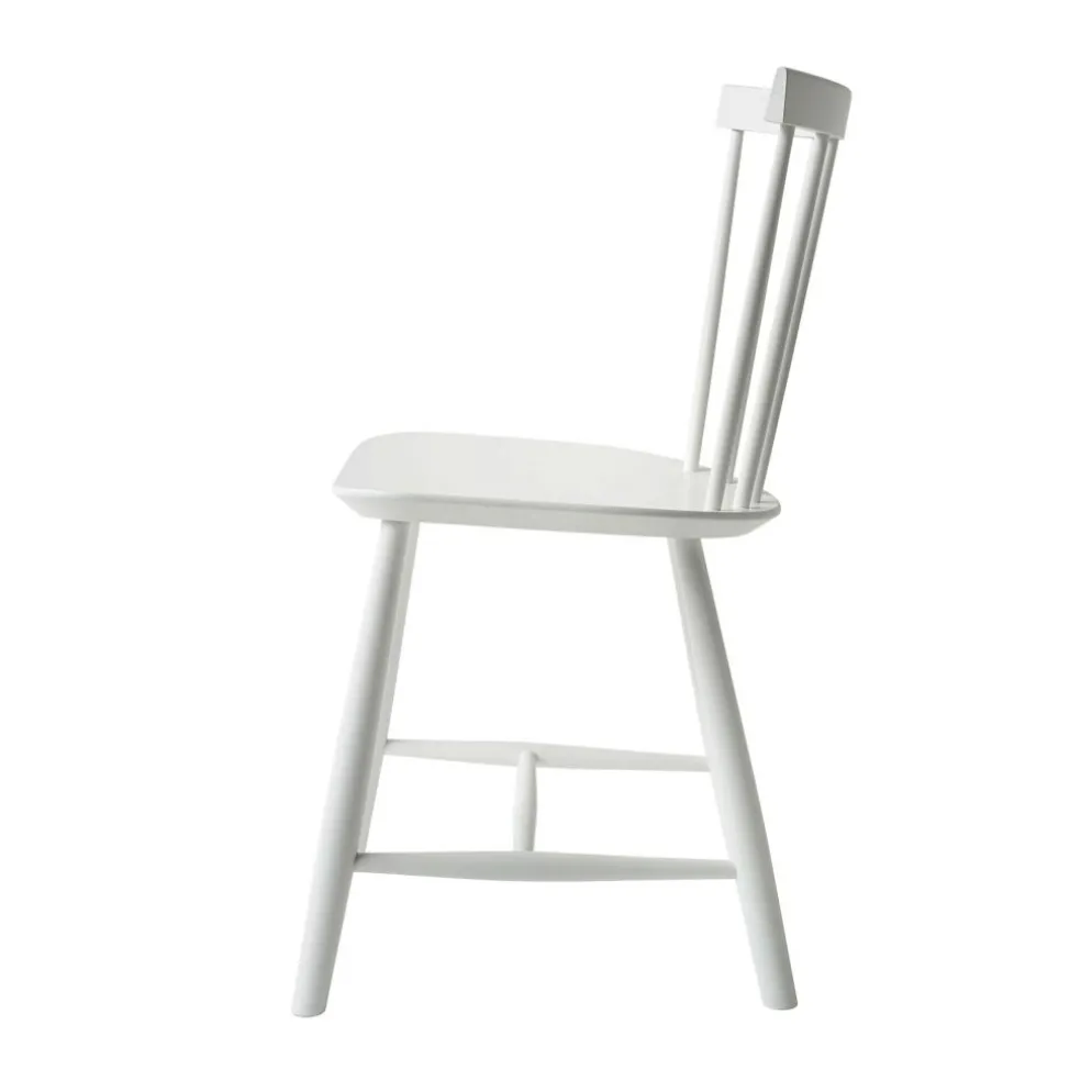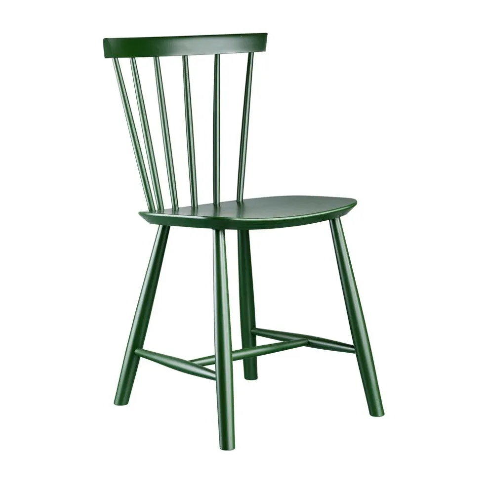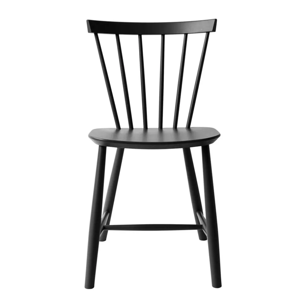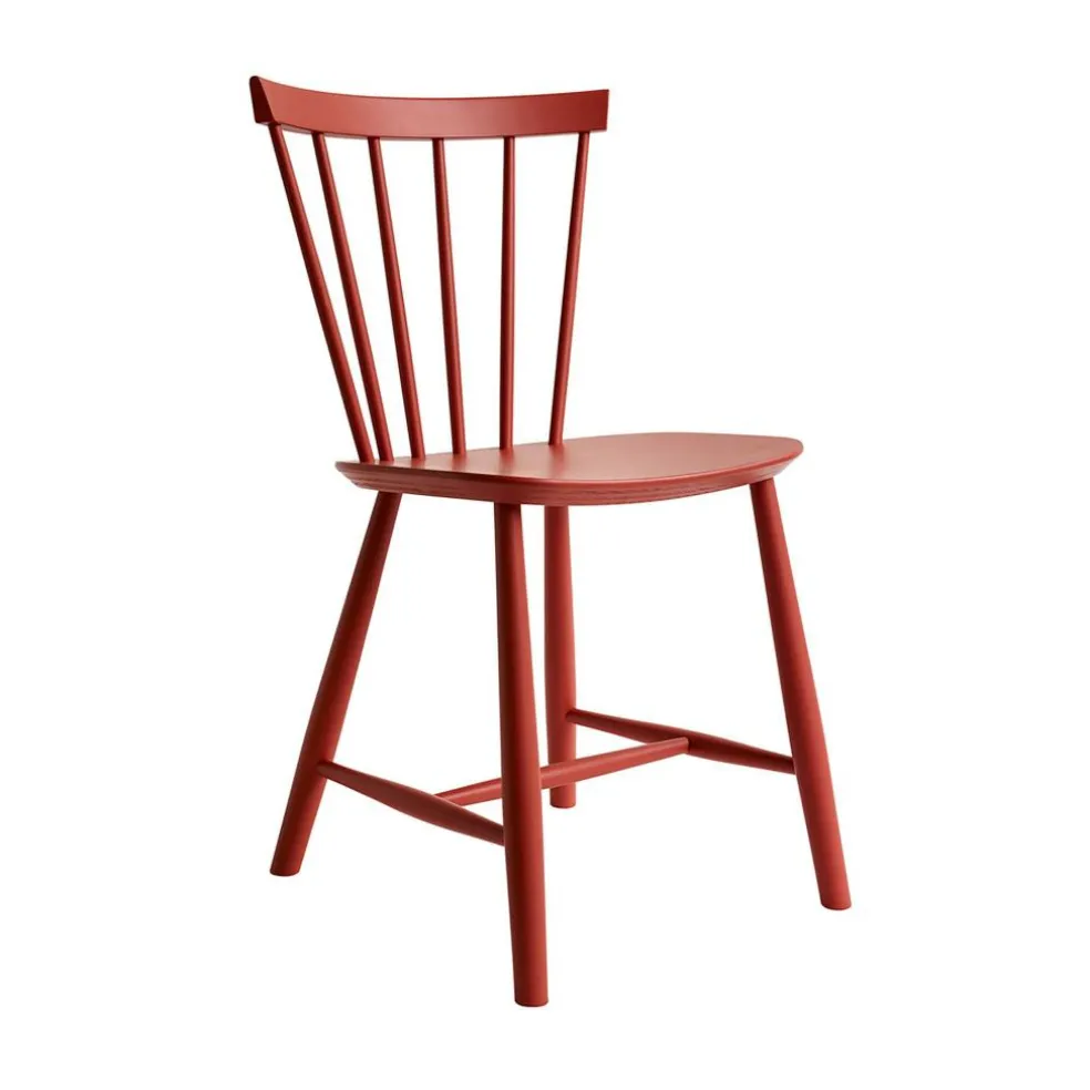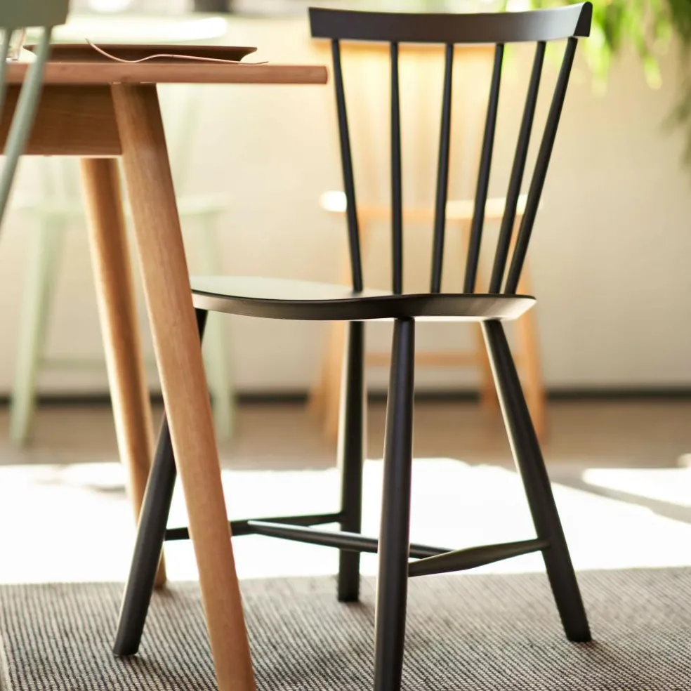 Die ergonomisch geformte Sitzfläche und eine stark gebogene Rückenlehne machen den J46 Stuhl zu einem einladenden Möbel, das einen bequemen Sitz auch bei längerem Gebrauch verspricht. Die speichenartig aneinandergereihten Rundstäbe seiner Lehne geben dem Stuhl zudem einen optischen Reiz. Formal passend sind auch die Stuhlbeine rund. Sie sind weit ausgestellt und mit Querstreben fixiert, was dem Designmöbel eine hohe Stabilität verleiht. Der J46 Stuhl ist aus hochwertigem Eichen- oder Buchenholz gefertigt, das aus FSC®-zertifizierter Herstellung stammt. Somit ist das komfortable und formschöne Sitzmöbel eine nachhaltige Wahl. In der Gruppe um einen Tisch gestellt, eignet sich der J46 Stuhl für das private Esszimmer ebenso wie für ein Restaurant oder die Kantine.