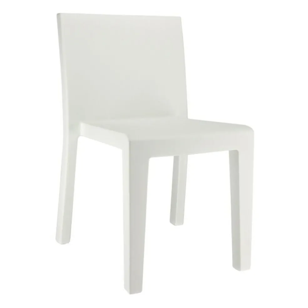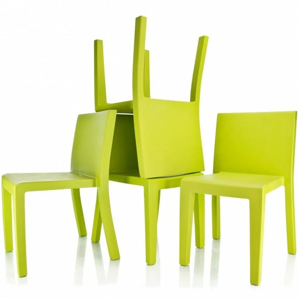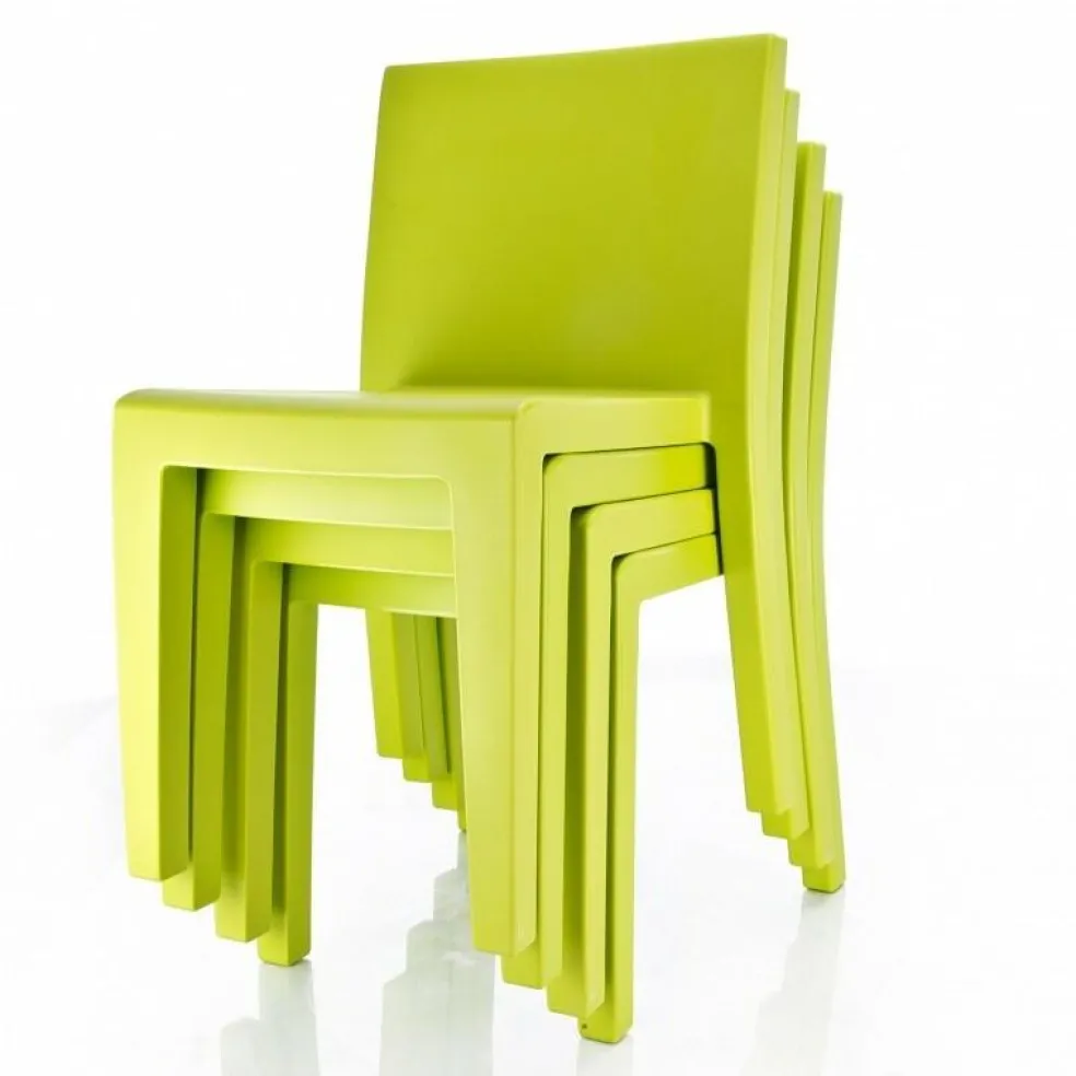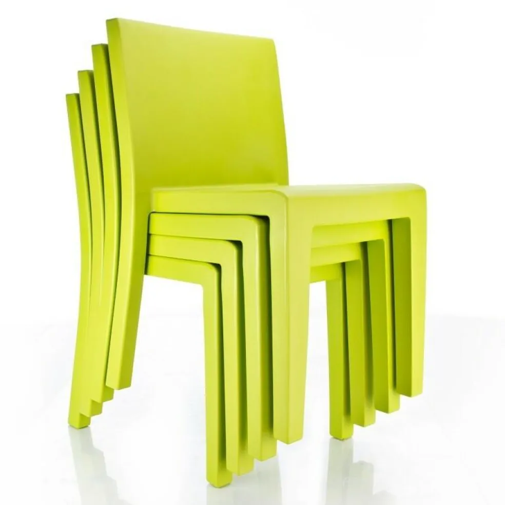 Schön und funktional, das muss ein Stuhl laut Karim Rashid sein. Und genau das ist der Jut Gartenstuhl. Seine Proportionen sind nicht nur in optischer Hinsicht harmonisch, sie sind auch so gewählt, dass sich der Stuhl bis zu vier Stühlen stapeln lässt. Seine Kanten sind abgerundet, Sitzfläche und Rückenlehne perfekt an den Körper angepasst. Der leichte Schwung der Lehne setzt sich in den hinteren Stuhlbeinen fort, während die vorderen Stuhlbeine zur Sitzfläche im rechten Winkel stehen. Das verleiht dem Jut Gartenstuhl Standfestigkeit. Er ist aus umweltfreundlichem Polyethylen gefertigt, was ihn robust und langlebig macht. Er ist nicht nur wasserresistent, sondern auch mit einem Ablauf für Regenwasser ausgestattet. Dadurch kann der Jut Gartenstuhl das ganze Jahr im Garten stehen. Zudem passt er gut auf eine moderne Terrasse oder an den Pool.