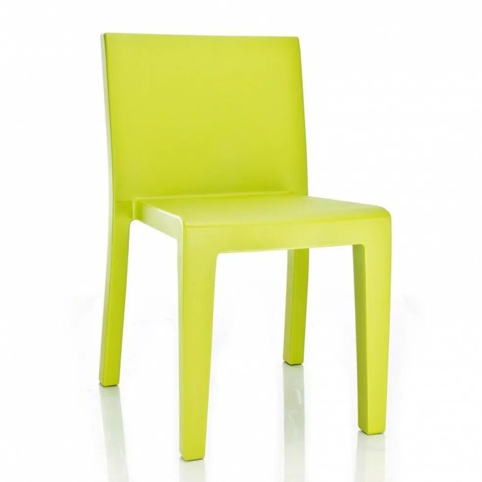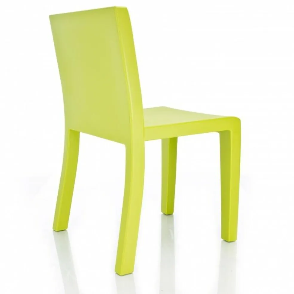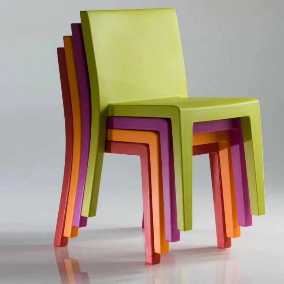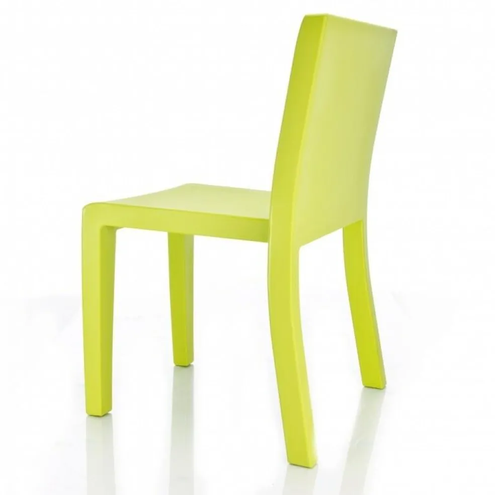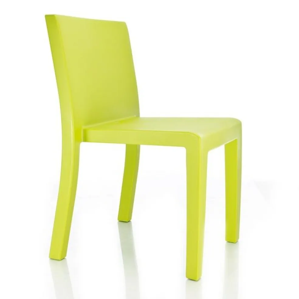 Schön und funktional, das muss ein Stuhl laut Karim Rashid sein. Und genau das ist der Jut Gartenstuhl. Seine Proportionen sind nicht nur in optischer Hinsicht harmonisch, sie sind auch so gewählt, dass sich der Stuhl bis zu vier Stühlen stapeln lässt. Seine Kanten sind abgerundet, Sitzfläche und Rückenlehne perfekt an den Körper angepasst. Der leichte Schwung der Lehne setzt sich in den hinteren Stuhlbeinen fort, während die vorderen Stuhlbeine zur Sitzfläche im rechten Winkel stehen. Das verleiht dem Jut Gartenstuhl Standfestigkeit. Er ist aus umweltfreundlichem Polyethylen gefertigt, was ihn robust und langlebig macht. Er ist nicht nur wasserresistent, sondern auch mit einem Ablauf für Regenwasser ausgestattet. Dadurch kann der Jut Gartenstuhl das ganze Jahr im Garten stehen. Zudem passt er gut auf eine moderne Terrasse oder an den Pool.