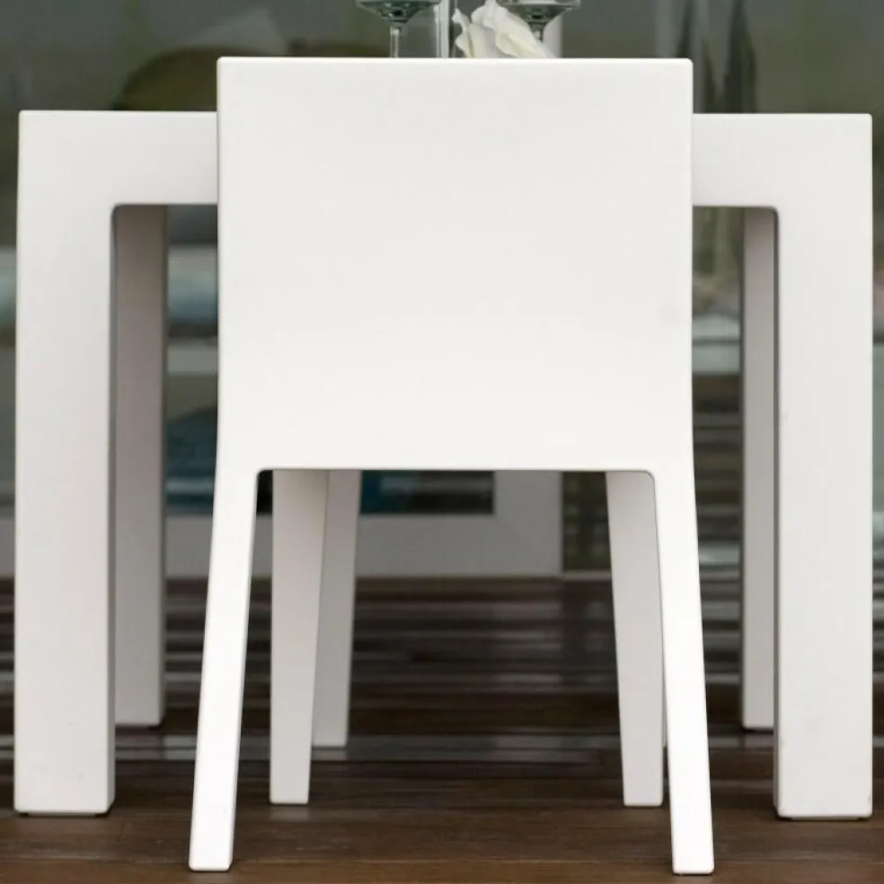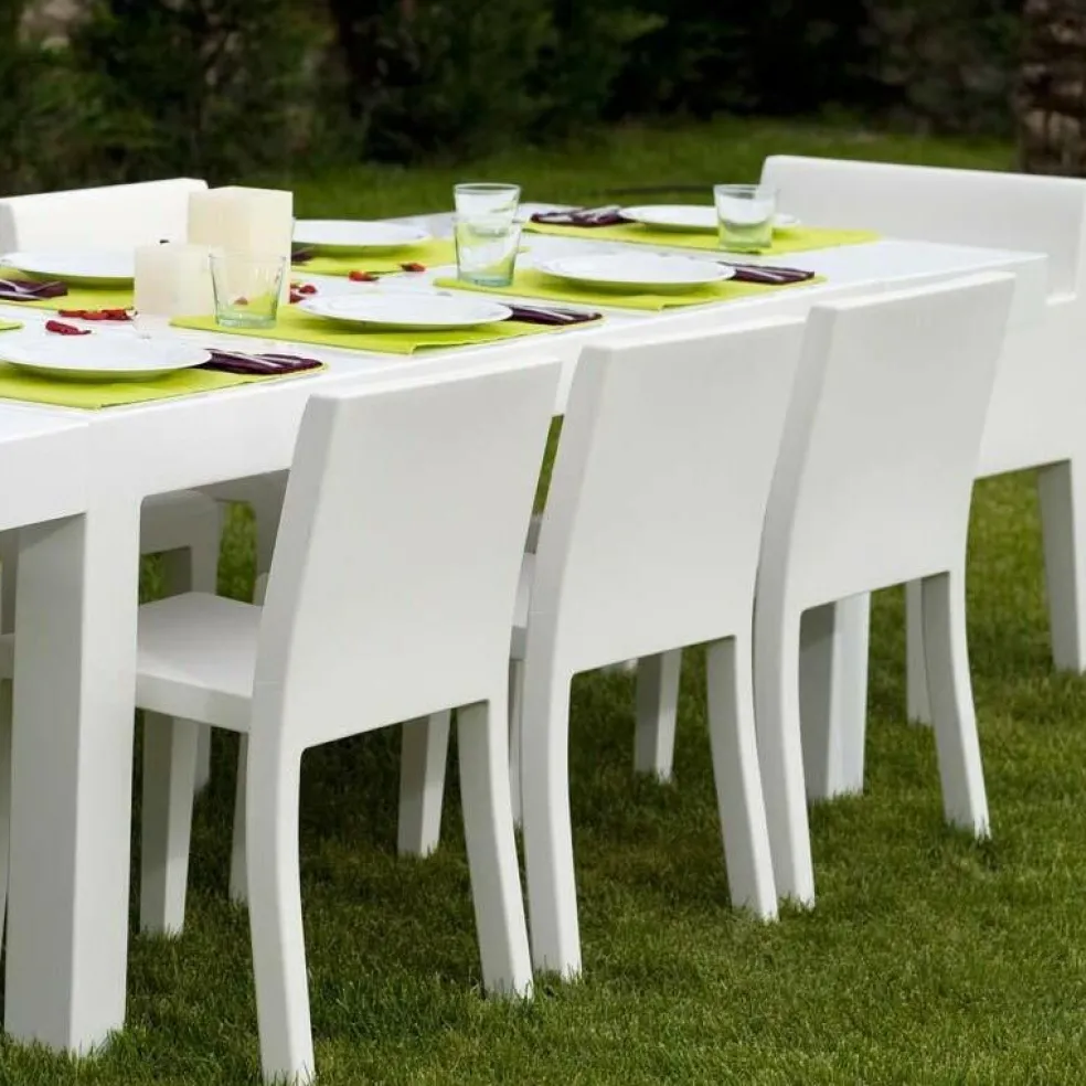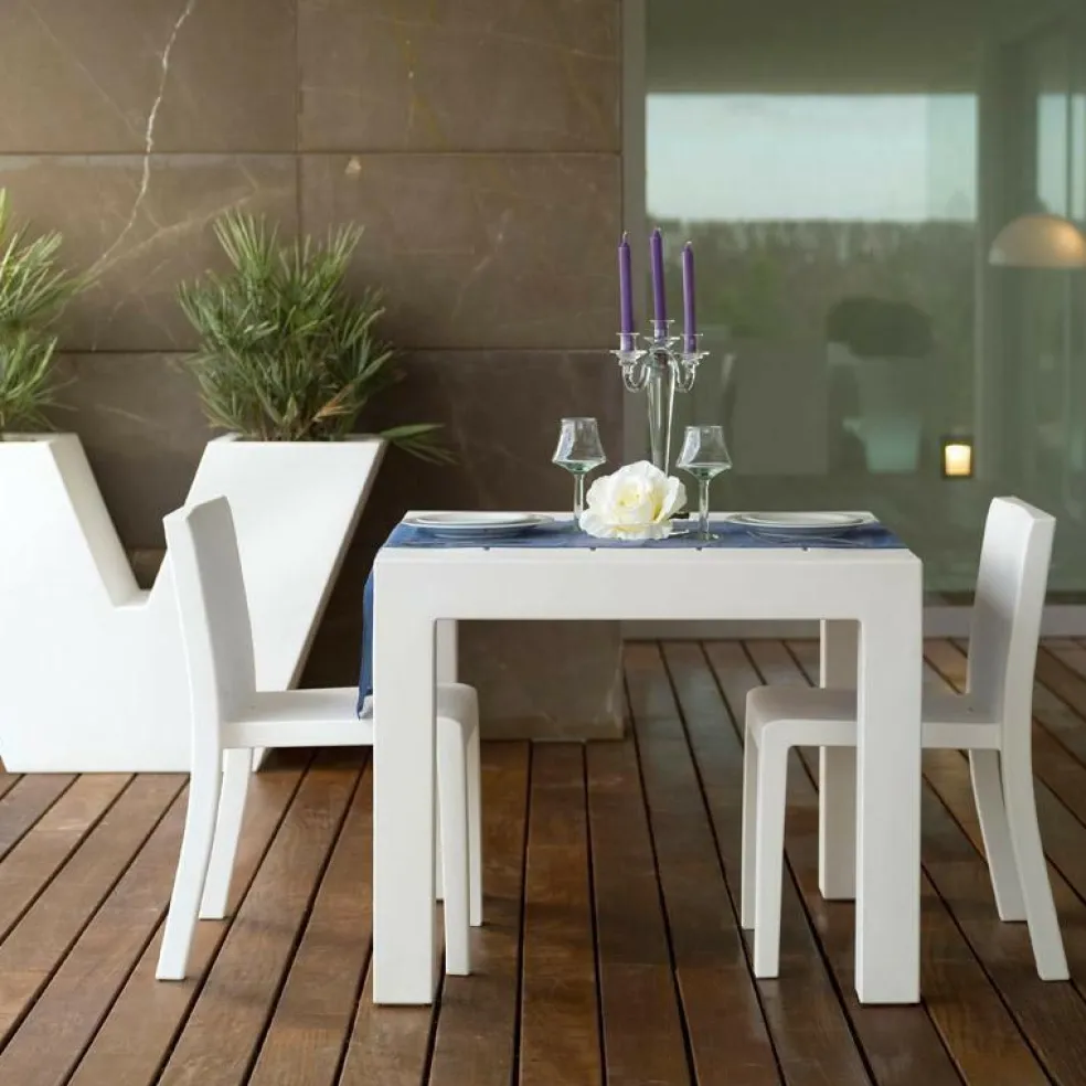Der Jut Gartenstuhl wurde von Karim Rashid für die Marke Vondom entworfen. Er ist Teil einer Outdoor-Kollektion, die sich durch ein minimalistisches Design, ergonomische Formen und Wiederverwertbarkeit auszeichnet.