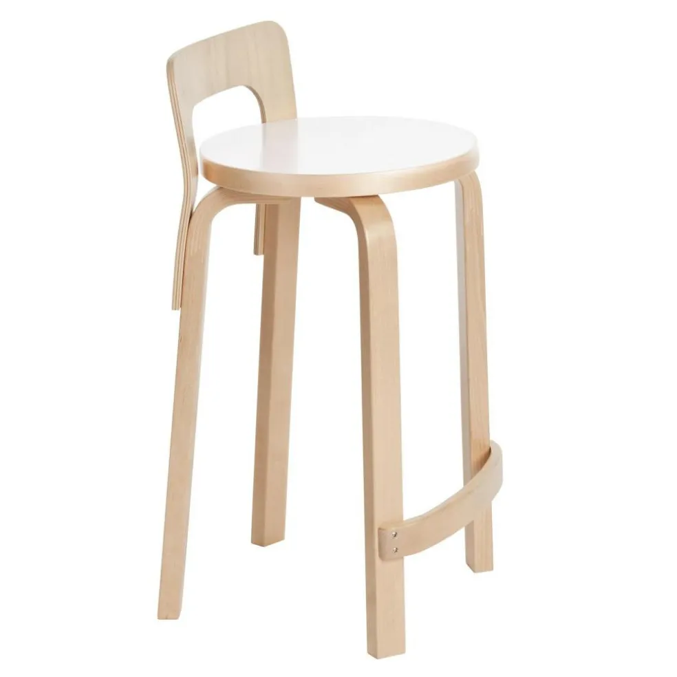 Der bequeme K65 Barstuhl Gestell klar lackiert wurde von dem Designer Alvar Aalto für die Marke Artek entworfen. Der finnische Architekt und Möbeldesigner gilt als Vater des Modernismus. Sein unverkennbarer Stil ist in seinen Möbel zu erkennen, die fast schon zu modern für das frühe 20. Jahrhundert wirken. Umso zeitgemäßer sind seine Designs heutzutage.