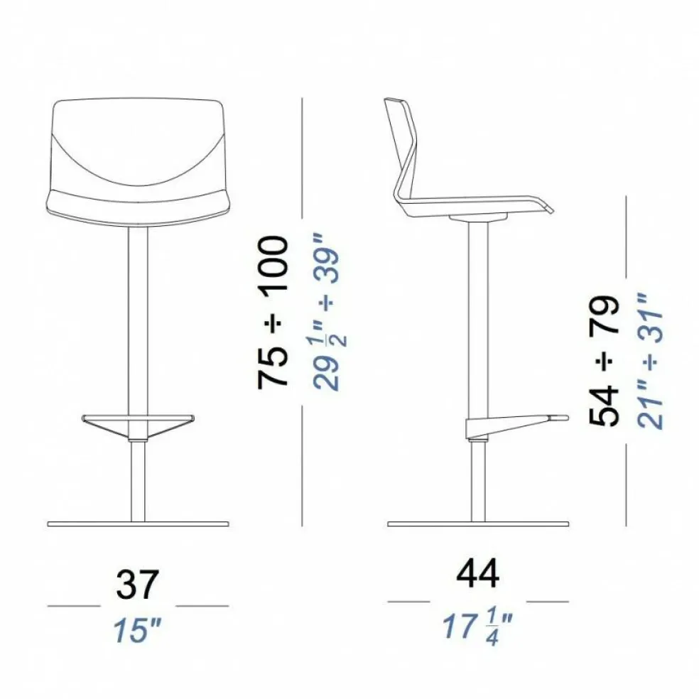 Mit einer Gasdruckfeder lässt sich die Höhe des Kai S39 Barhocker Sitz Eiche mit Kissen 54-79cm von 54 bis 79 cm verstellen. Der Barhocker wiegt 12 kg. Die Tiefe beträgt 44 cm und die Breite 37 cm. Dank seiner schmalen Abmessungen passt der Kai S39 Barhocker Sitz Eiche mit Kissen 54-79cm auch in kleine Räume. Der Kai S39 Barhocker Sitz Eiche mit Kissen 54-79cm bereichert jedes Lokal sowie die Hausbar.