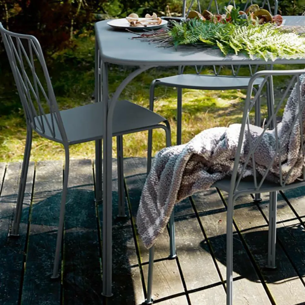 Terence Conran ließ sich für den Stuhl Kintbury von seiner Umgebung inspirieren: Er lebt seit den 1970er Jahren in einem Landhaus in Kintbury, England. Für Fermob gestaltete die Design-Legende einen leicht geschwungenen Gartenstuhl aus Stahldraht.