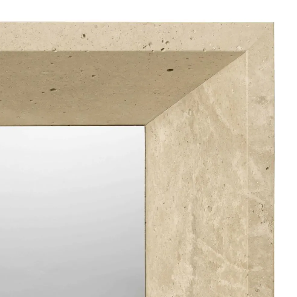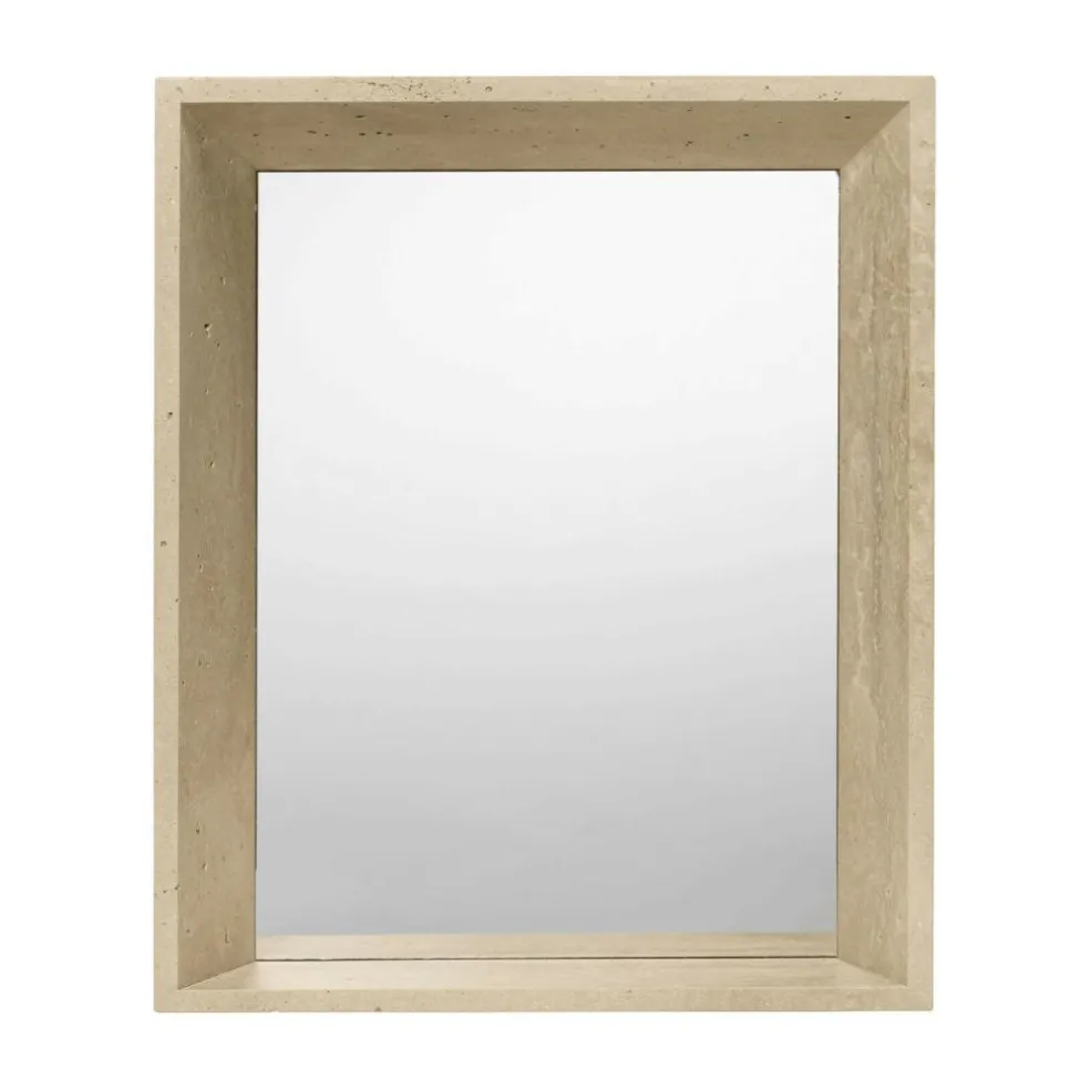 Der charakterstarke Lancet Spiegel zeichnet sich durch seinen tiefen Rahmen aus natürlichem Travertin aus. Dieser ist seitlich leicht ausgestellt und richtet den Fokus auf die spiegelnde Mitte des Spiegels. Inspiration fand der dänische Architekt im Ferienhaus seiner Familie auf Mallorca. Der spitz zulaufende Spiegel greift die schmalen Fenster der südländischen Unterkunft auf. Der hochwertige Travertin mit seinem natürlichen Farbton und der harmonischen Maserung greift die genutzten Naturmaterialien des Hauses auf. Der Travertin unterstreicht mit einer eleganten Reflexion die Spiegelung in der Mitte. Besonders gut passt der Lancet Spiegel in stilvolle Umgebungen, die Wert auf Natürlichkeit und Hochwertigkeit legen. Ob als Blickfang im Flur oder als Spiegel im Badezimmer – dieser Spiegel ist nicht nur praktisch in seiner Funktion, sondern ein architektonisch inspiriertes Highlight. Seine Breite ist 63,5 cm, während seine Höhe bei 53 cm und seine Tiefe bei 12 cm liegen. Er ist 15,2 kg schwer. Da Travertin ein Naturmaterial ist, kann es zu leichten Abweichungen in Farbe und Maserung kommen, die jeden Spiegel zu einem Unikat machen. Der Lancet Spiegel kann mit einem feuchten Tuch abgewischt werden.