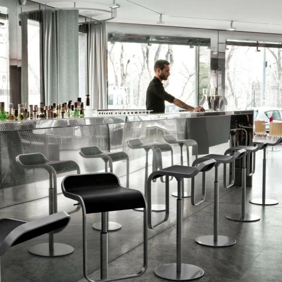 Der LEM S79 Barhocker Sitzfläche Leder 63-75cm wurde von Shin Azumi und Tomoko Azumi für die Marke Lapalma entworfen. Die Abkürzung LEM steht für Lunar Excursion Module: Genau mit diesem Raumschiff flogen im Jahr 1969 die ersten Astronauten zum Mond. Da der LEM S79 Barhocker Sitzfläche Leder 63-75cm ebenso wie ein Raumschiff ohne unnötigen Ballast auskommt, ist der Name wahrlich treffend.
