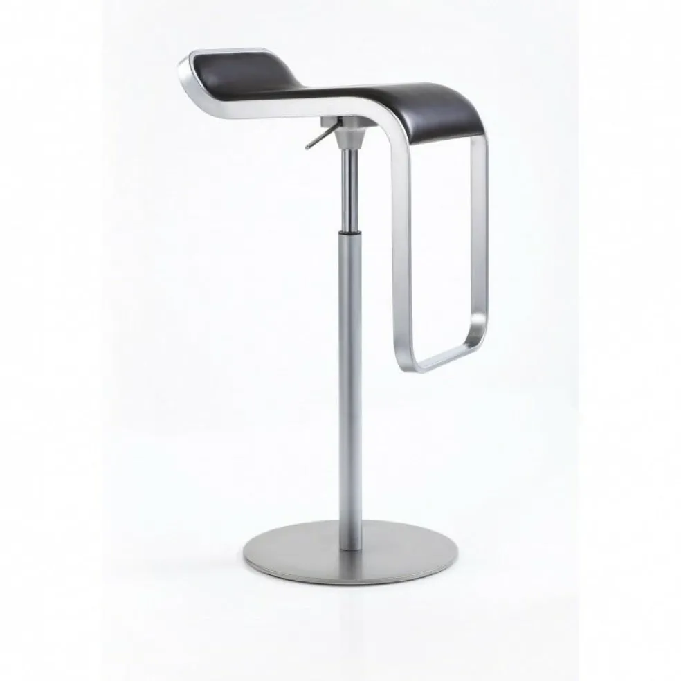 Der LEM S79 Barhocker Sitzfläche Leder 63-75cm beweist Flexibilität: Er kann sowohl gedreht als auch in der Höhe zwischen 63 und 75 cm verstellt werden. Ein Rahmen, der die Sitzfläche umspannt und vorne eine Fußstütze bildet, wird zum Blickfang. Das Gestell des Barhockers besteht aus Metall und ist mit Chrom und Nickel veredelt. Die runde Bodenplatte ist mit Edelstahl überzogen und hat einen Durchmesser von 37 cm. Die Sitzfläche besteht aus formgepresstem Multiplex. Darüber ist edles Leder gespannt, das aus Kuhhaut gefertigt ist und 2,4 bis 2,5 mm dick ist.
