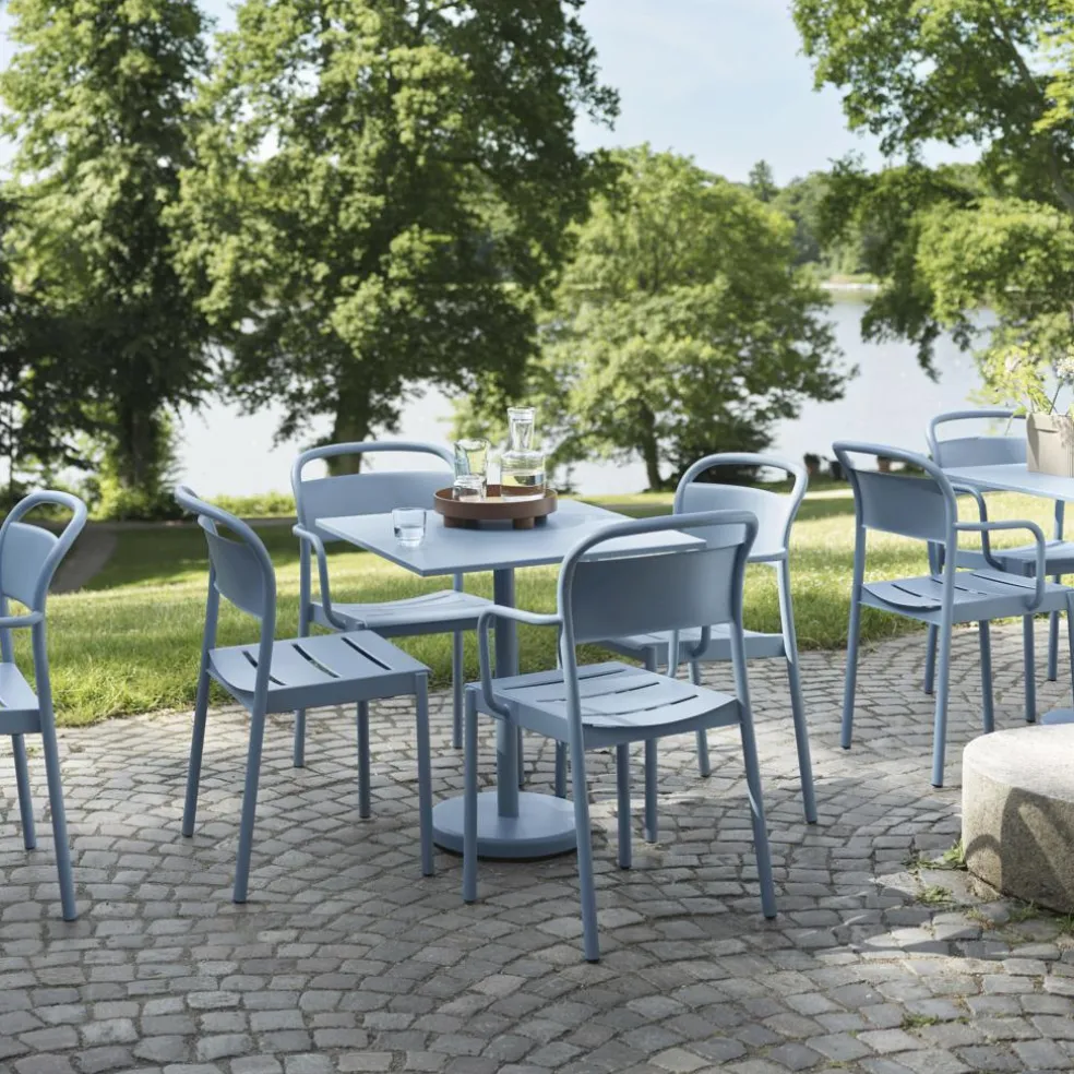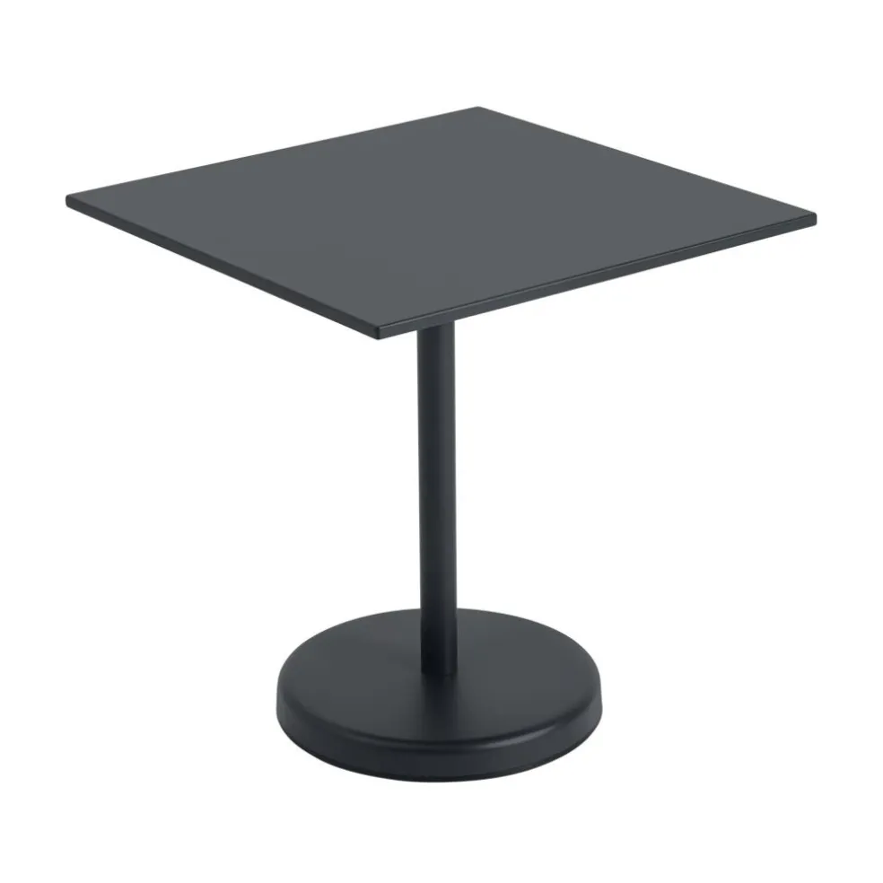 Der Linear Steel Bistrotisch 70x73x70cm wurde von Thomas Bentzen für die Marke Muuto entworfen. Er gehört einer Kollektion von eleganten wie praktischen Outdoormöbeln an, die mit ihrem minimalistischen Design und einer formschönen Ästhetik auffallen.