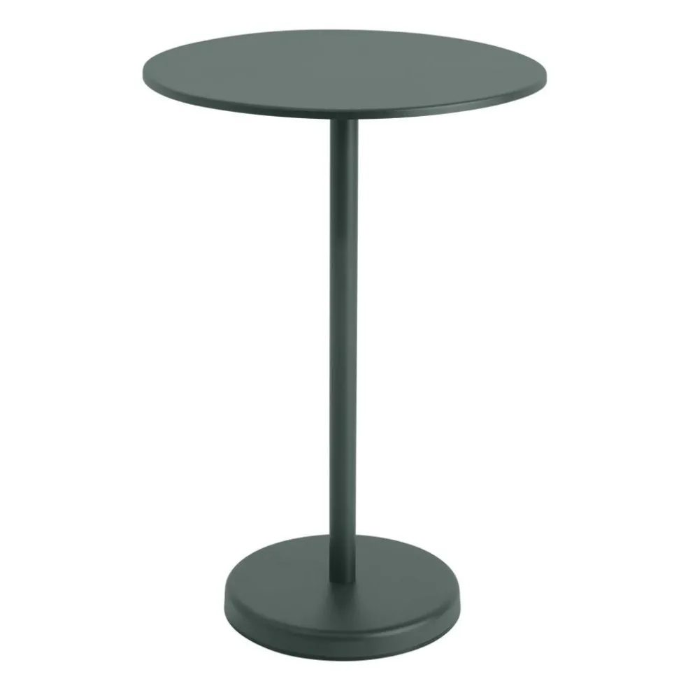 Durch die Verwendung robuster Materialien hat der in verschiedenen Farben erhältliche Linear Steel Bistrotisch Ø70 x H105cm eine lange Lebensdauer. Die Pflege ist einfach: Schmutz kann mit einem feuchten Tuch entfernt werden. Für hartnäckigen Schmutz empfiehlt sich ein mildes Reinigungsmittel. Der 25,3kg schwere Tisch ist 105cm hoch. Auf der Tischplatte mit einem Durchmesser von 70cm können Speisen und Getränke oder andere Utensilien abgestellt werden. Aus der Serie gibt es passende Stühle oder Tische mit eckigen Tischplatten.