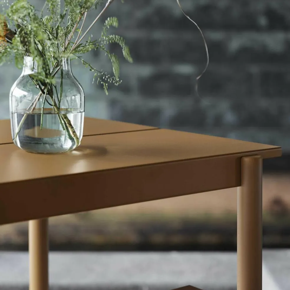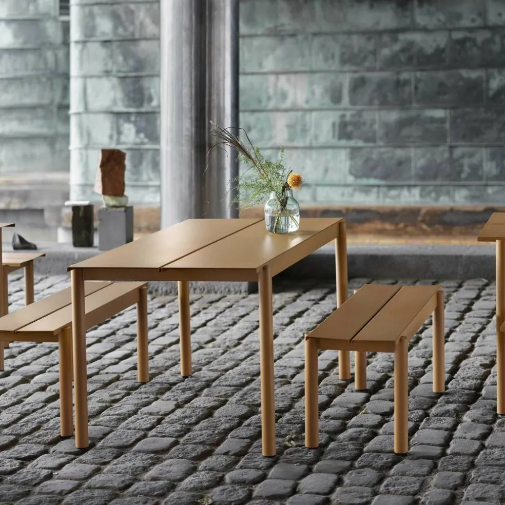 Mit seinen klaren Linien fügt sich der Linear Steel Gartentisch 140x75cm harmonisch in jeden Garten, auf jeden Balkon oder die Terrasse ein. Der Aufbau es Tisches ist denkbar einfach und dennoch ästhetisch: Sichern Stand gewährleisten dem Tisch vier runde Füße, die an der Außenseite deutlich sichtbar sind. Darauf ist eine leicht über die Seiten hinauslaufende Platte befestigt, die aus zwei Teilen besteht. Für den Linear Steel Gartentisch 140x75cm verwendet Bentzen pulverbeschichteten Stahl. Das Material ist äußerst robust und hält UV-Strahlen, Regen und Wind problemlos Stand.
