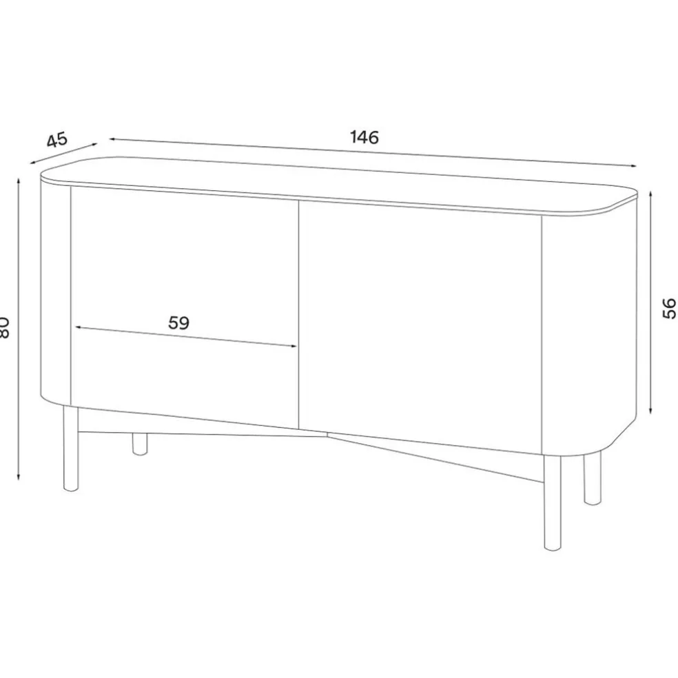 Das Loud Sideboard ist 146cm breit und 45cm tief. Seine Höhe misst 80cm. Innen hat das Aufbewahrungsmöbel eine Höhe von 59cm. Es wiegt 50kg. Zur Auswahl stehen Ausführung mit verschieden behandelten Oberflächen. Passend dazu gibt es aus der Loud-Serie einen Hochschrank sowie einen Barwagen.