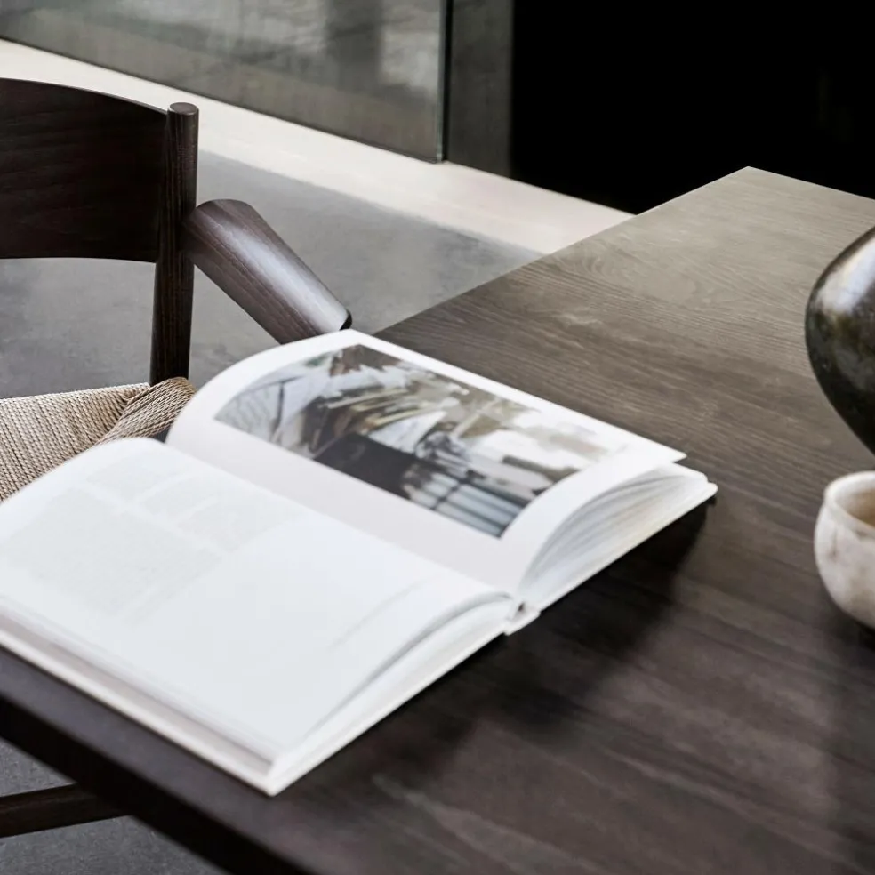 Der Mater Esstisch wurde von Thomas Lykke für die Marke Mater entworfen. Der dänische Designer beweist mit diesem Modell seine Vorliebe für Holz. Hinter seinem Konzept stehen Minimalismus und Funktionalität. Dabei setzt er auf Kontraste.