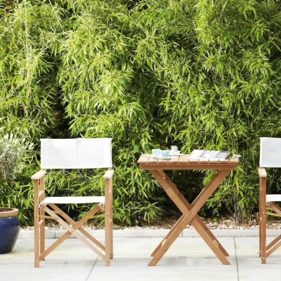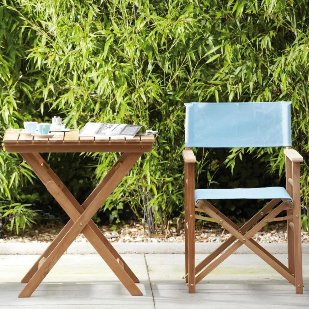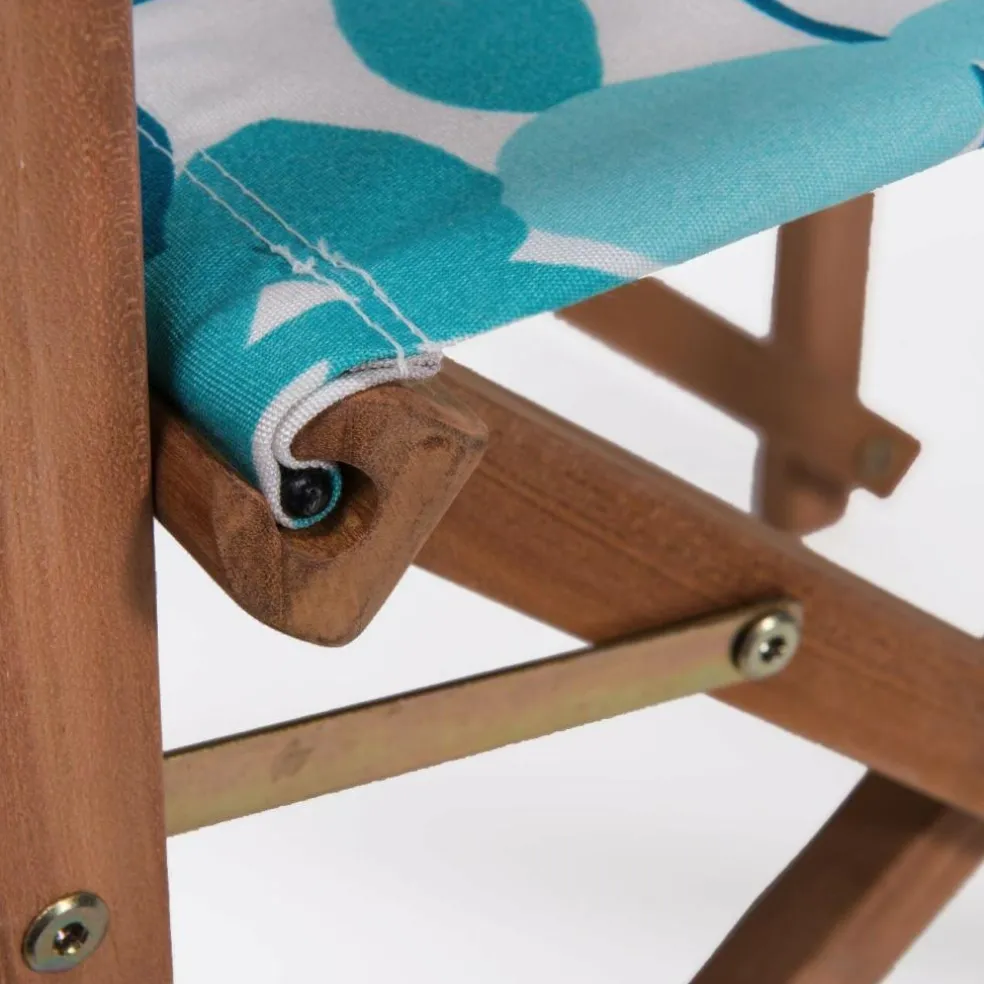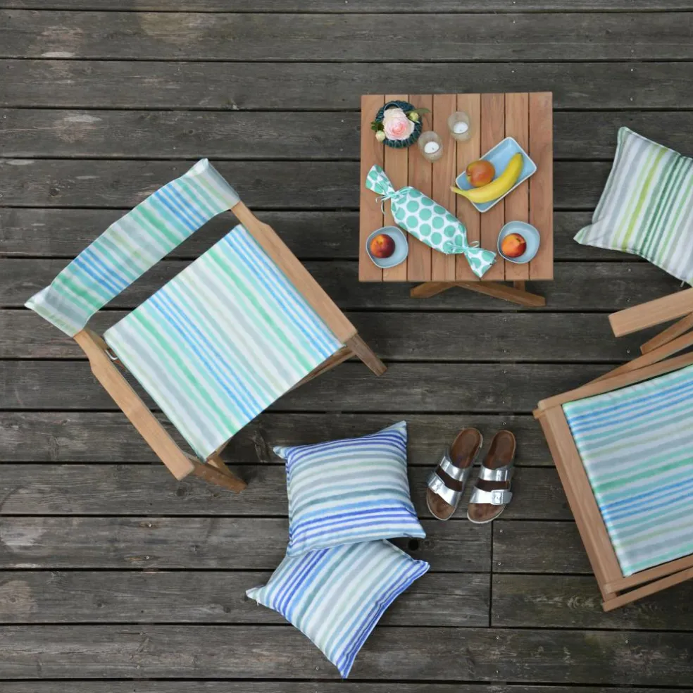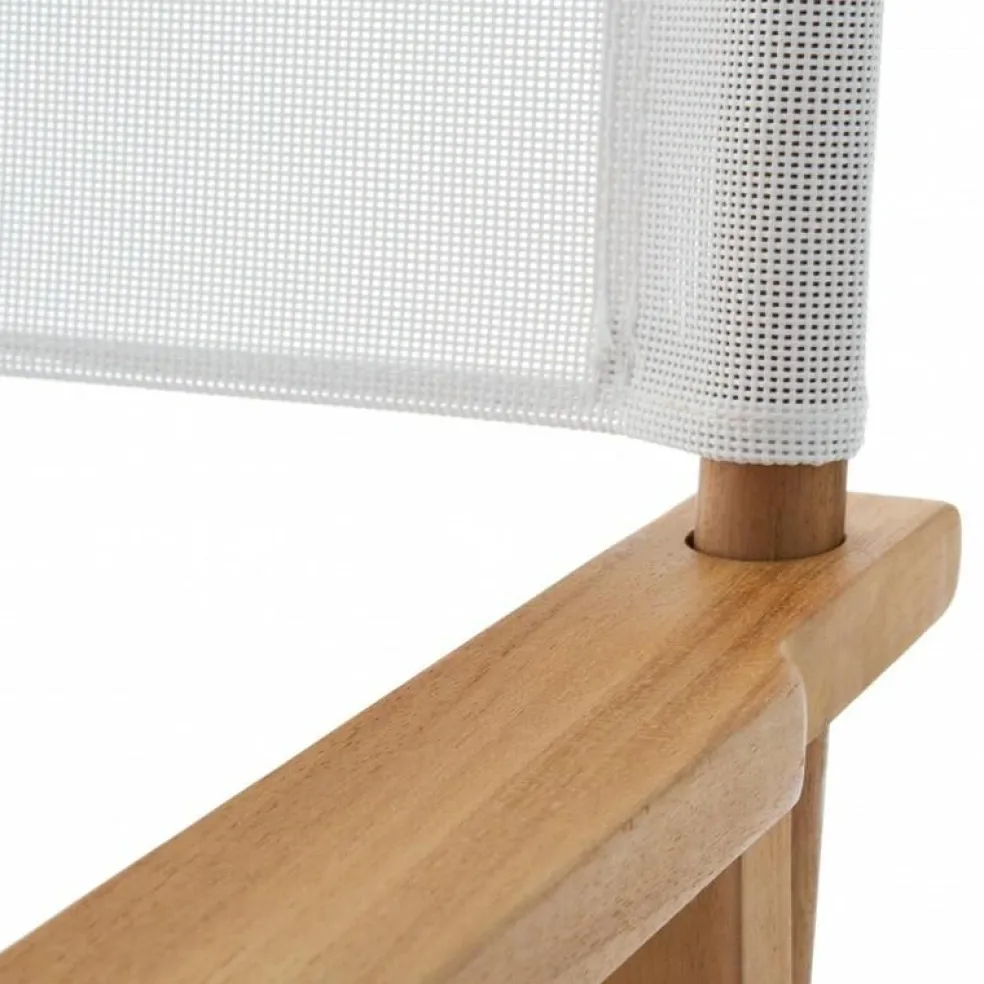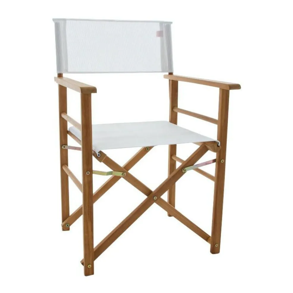 Für ein sommerliches maritimes Ambiente sind die Regiestühle einfach unverzichtbar! Der Bezug der besteht aus wetterfestem und UV-beständigem Acrylgewebe, welches besondere Eigenschaften wie hohe Formstabilität mitbringt. Darüber hinaus beugt das schnell schnell trocknende Material die Bildung von Schimmelpilzen vor. Das Gestell der Jan Kurtz Regiestühle wird aus massivem witterungsbeständigem Teakholz gefertigt.