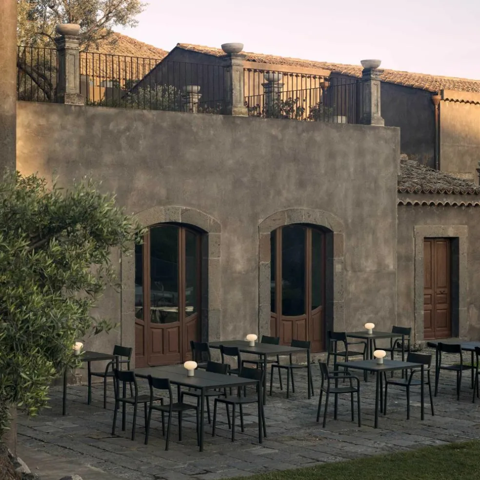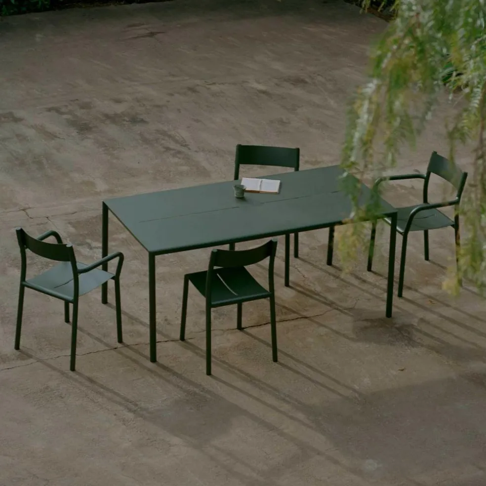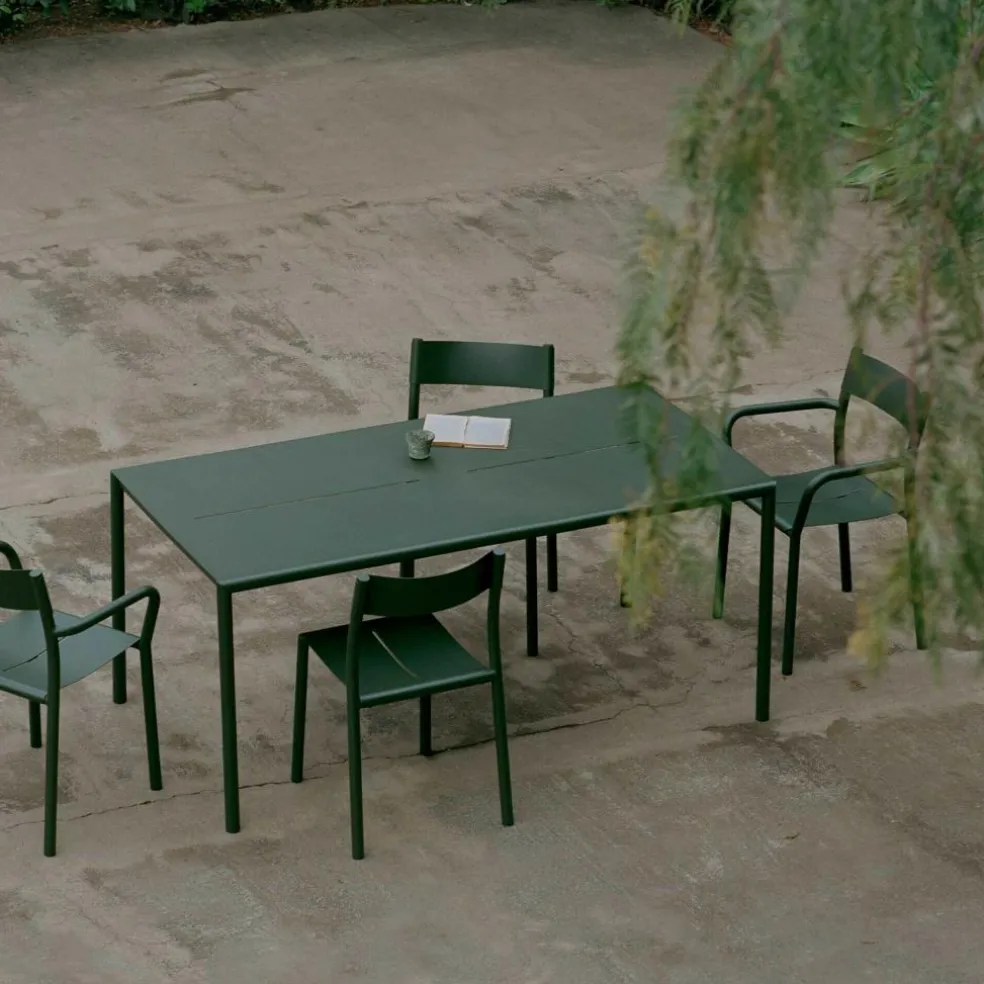 Der May Gartentisch 170x85cm wurde von Hannes & Fritz für die Marke New Works entworfen. Der Gartentisch gehört zur May-Kollektion aus dem Jahr 2023 mit Möbeln für den Außenbereich, die namensgebend den Frühling im Freien einläuten.
