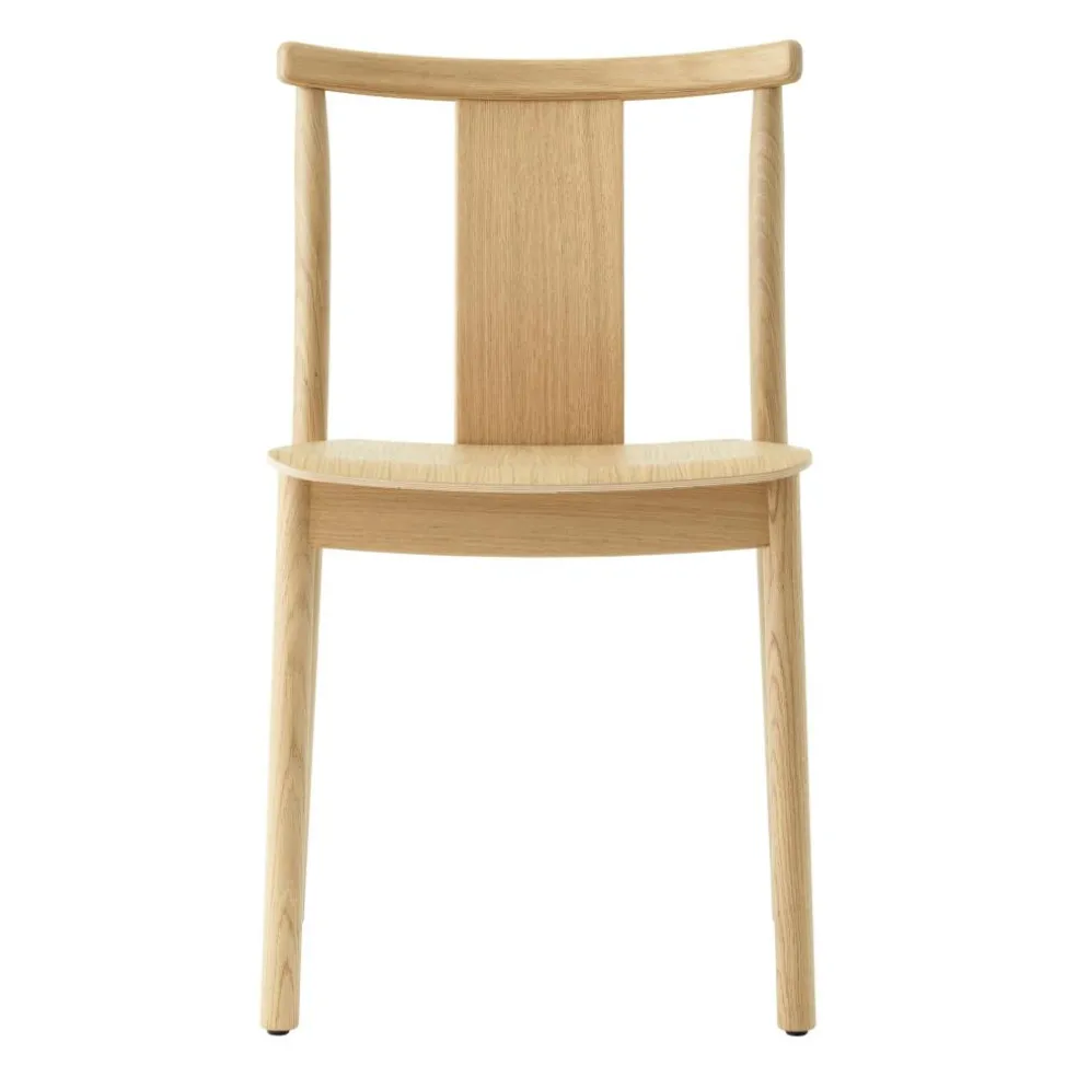 Ursprünglich wurde der Merkur Stuhl für das berühmte Börsengebäude in Oslo entworfen. Daraus ergibt sich der Name: Der römische Gott Merkur war für den Gewinn, den Reichtum und den Handel verantwortlich. Dem soliden Holzstuhl verleihen vier massive Beine Halt, die Gleiter an der Unterseite aufweisen. Die hinteren sind leicht ausgestellt und gehen in die geneigte Rückenlehne über. Sie besteht aus einer schmalen Querlatte und einem senkrechten, leicht gebogenen Holzbrett. Die Sitzfläche ragt vorn und an den Seiten etwas über den Rahmen hinaus. Sie ist ergonomisch geformt, was zum ausgezeichneten Sitzkomfort beiträgt. Gefertigt wird der Merkur Stuhl aus edlem Eichenholz. Er ist mit naturfarbener oder gebeizter Oberfläche erhältlich.