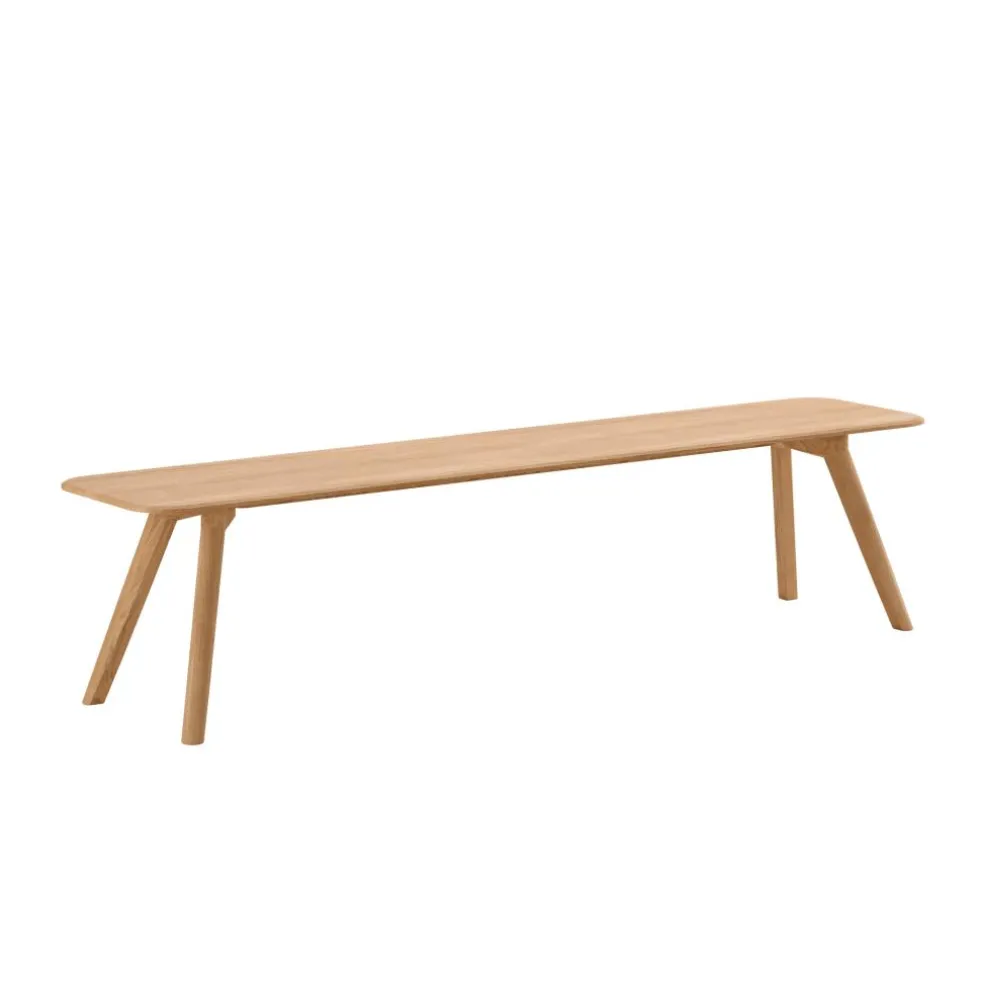 Mit ihrem schlichten Entwurf passt die Meyer Medium-Large Bank 180cm in jedes Umfeld. Sie wird zum gemütlichen Treffpunkt in der Küche, im Wohn- oder Esszimmer. Vorgestellt wurde das Modell im Jahr 2016. Die Meyer Medium-Large Bank 180cm besteht aus gewachstem Eichenholz. Die Wachsschicht sorgt für ausgezeichnete Haptik und schützt das Material außerdem. So wirkt das Holz natürlich und Schmutz lässt sich einfach entfernen. Der Werkstoff trägt das FSC®-Siegel, was bedeutet, dass er aus nachhaltiger Forstwirtschaft stammt. Die Meyer Medium-Large Bank 180cm reduziert sich auf schlichtes Design: Sie besteht aus vier ausgestellten Beinen und einer Sitzfläche mit abgerundeten Kanten. Die gemütliche Bank eignet sich sowohl für den privaten Bereich als auch für den öffentlichen Raum.