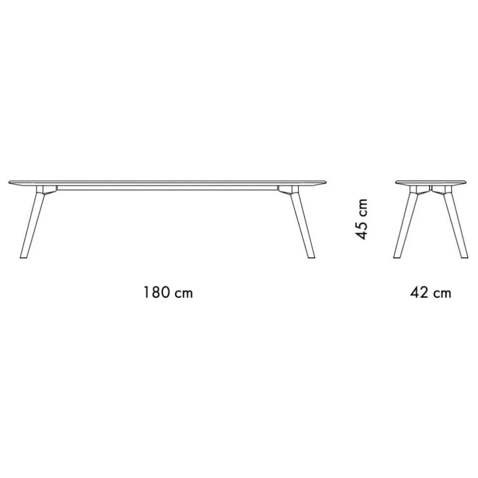 Die Meyer Medium-Large Bank 180cm ist 21 kg schwer. Das Modell ist 180 cm lang und 42 cm breit. Mit einer Höhe von 45 cm passt sie zu jedem Tisch. Besonders gut harmoniert sie mit Holzmöbeln. Aus derselben Kollektion gibt es weitere Bänke in anderen Größen.