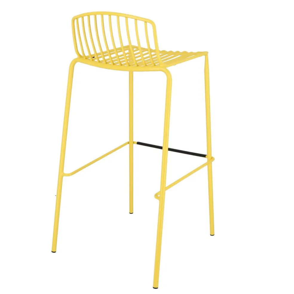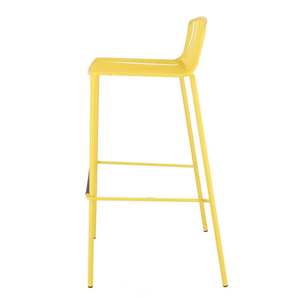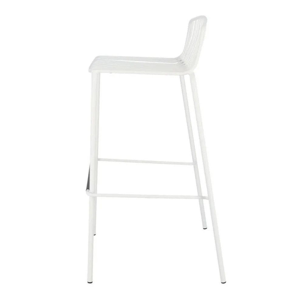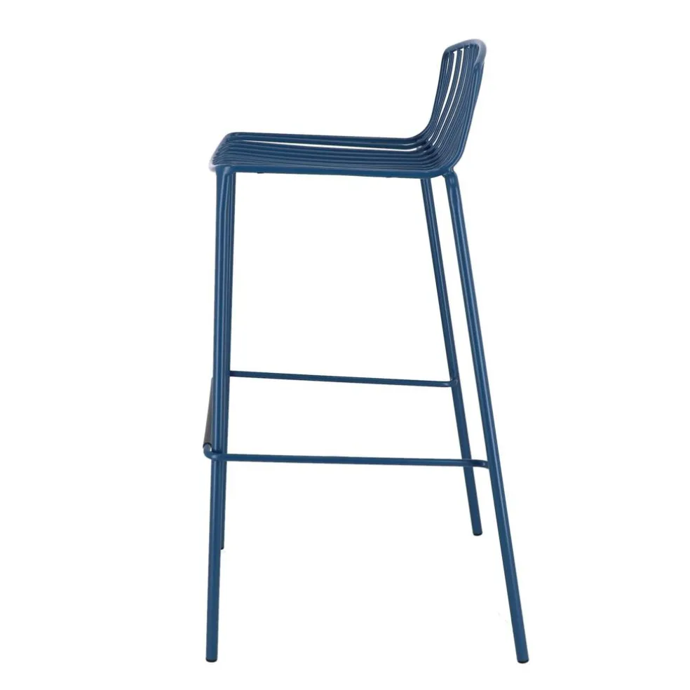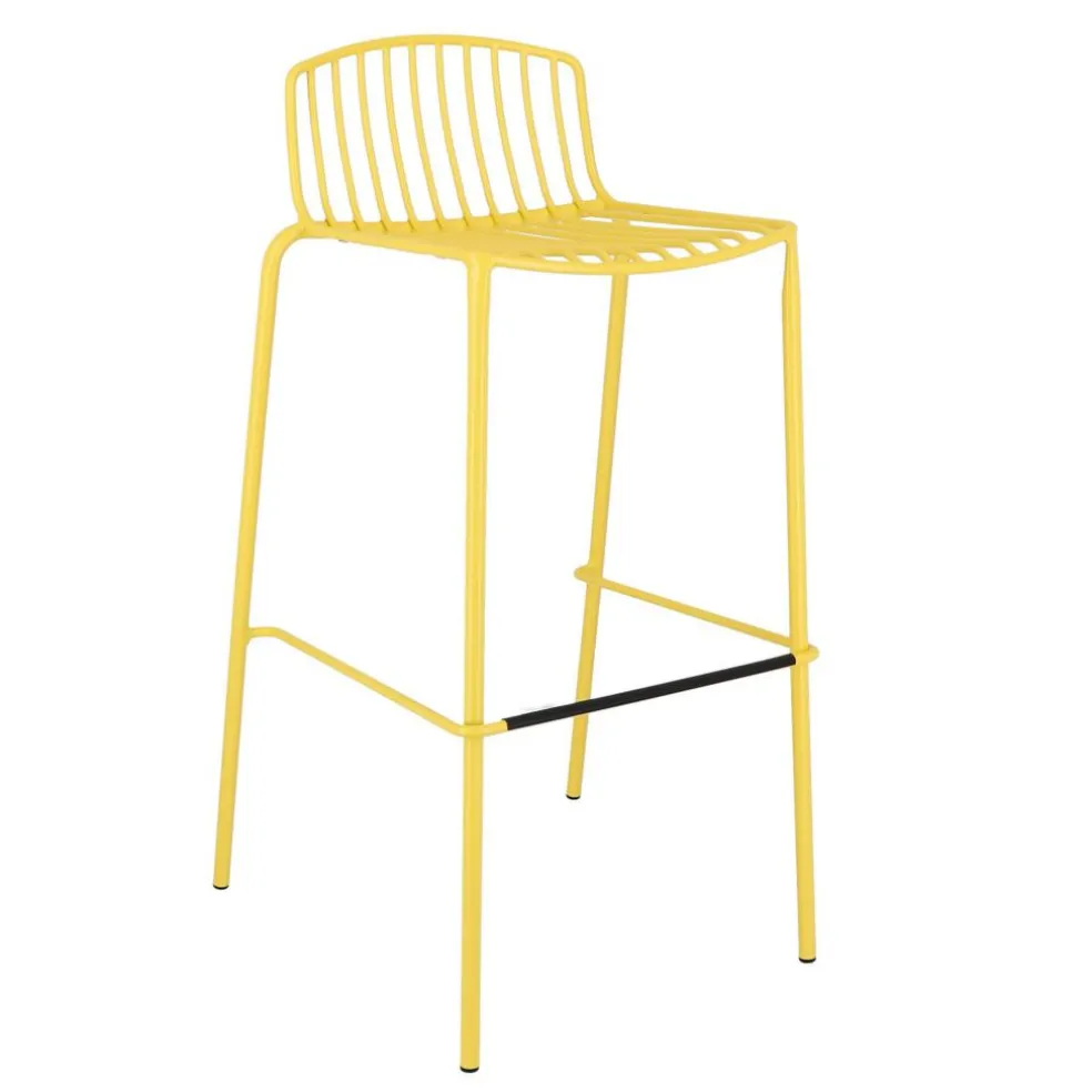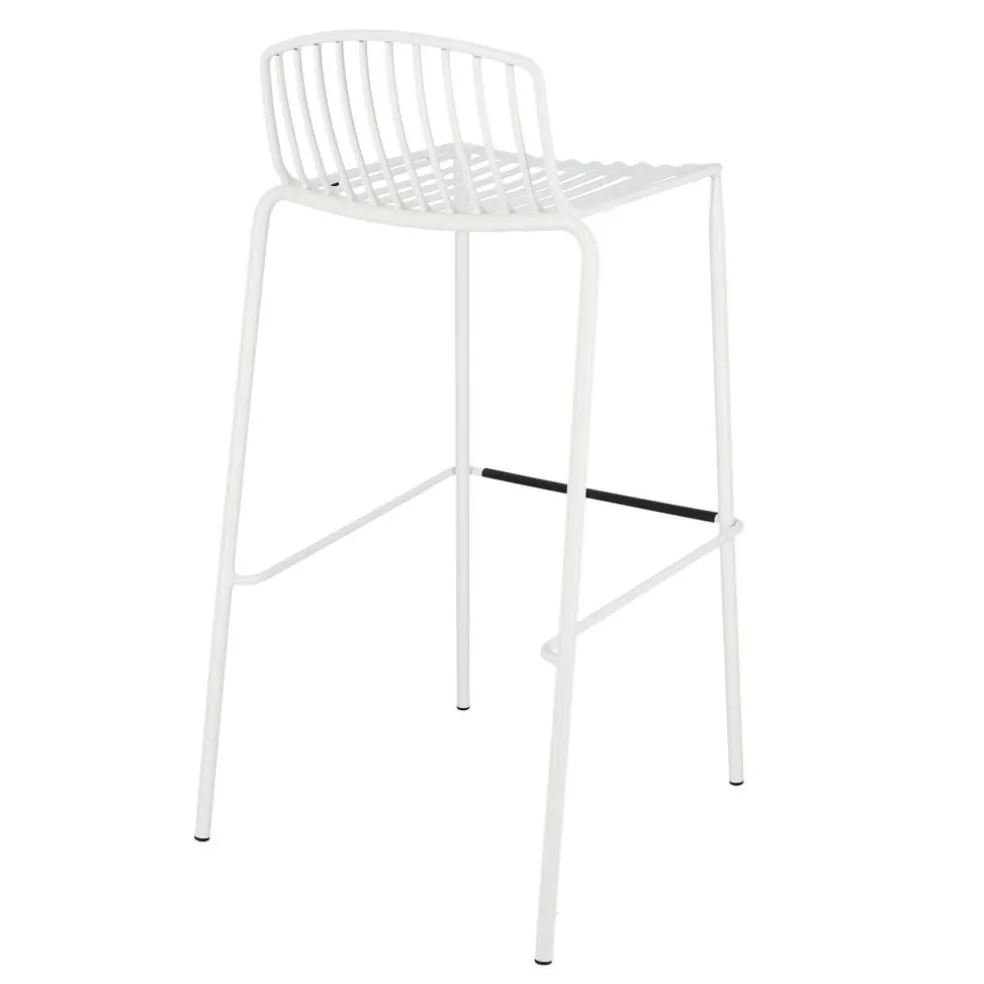 Funktionalität und moderne Zurückhaltung charakterisieren den Mori Gartenbarstuhl 75cm. Das hohe Sitzmöbel macht dabei nicht nur im Außenbereich eine gute Figur. Es lädt auch im Esszimmer und am Küchentresen zum Platznehmen ein. Sein Design ist so schlicht wie überzeugend. Die kurze, oben abgerundete Rückenlehne des Stuhls gibt Halt und besticht ebenso wie die leicht konkave Sitzfläche durch schmale, ineinander fortlaufende Verstrebungen. Das schlanke Gestell mit vier zarten Beinen sorgt mit seiner Fußstütze vorne und an den Seiten für stabilen Sitzkomfort. Hergestellt ist der wetterbeständige Gartenbarstuhl aus pulverbeschichtetem Stahl. Das Modell gibt es in verschiedenen neutralen bis leuchtenden Farben, die sich drinnen und draußen auf Balkon und Terrasse ideal miteinander kombinieren lassen. Ein weiterer Vorteil: Der Stuhl ist bis 4 Stück stapelbar.