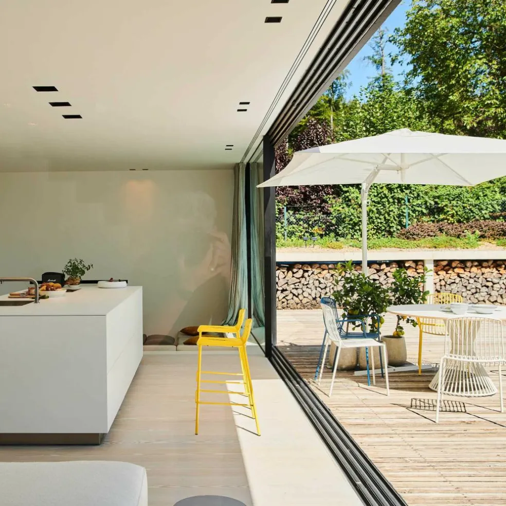 Der Mori Gartenstuhl wurde für die Marke Jan Kurtz entworfen. Sommerlich leicht und filigran ist der moderne Metallstuhl des aus Baden-Württemberg stammenden Designunternehmens ein bequemer Hingucker in jedem Außenbereich.