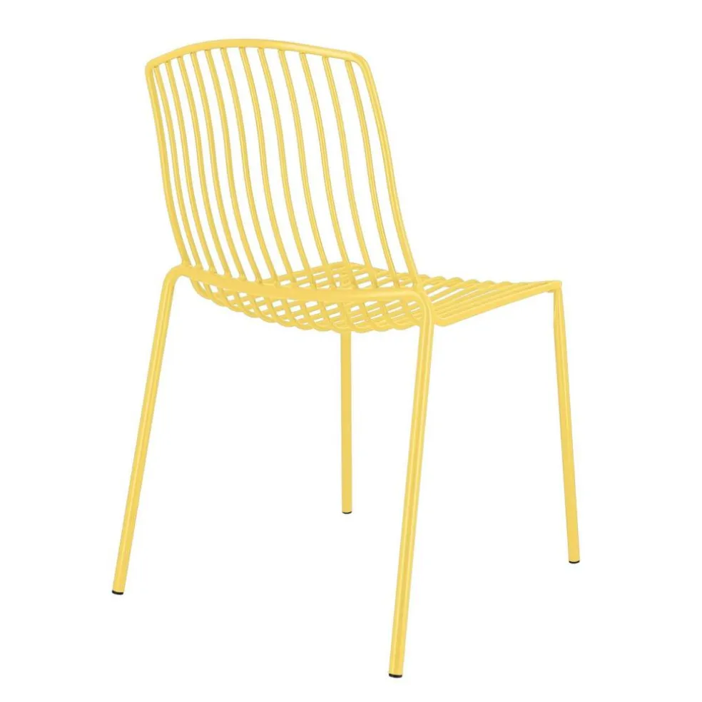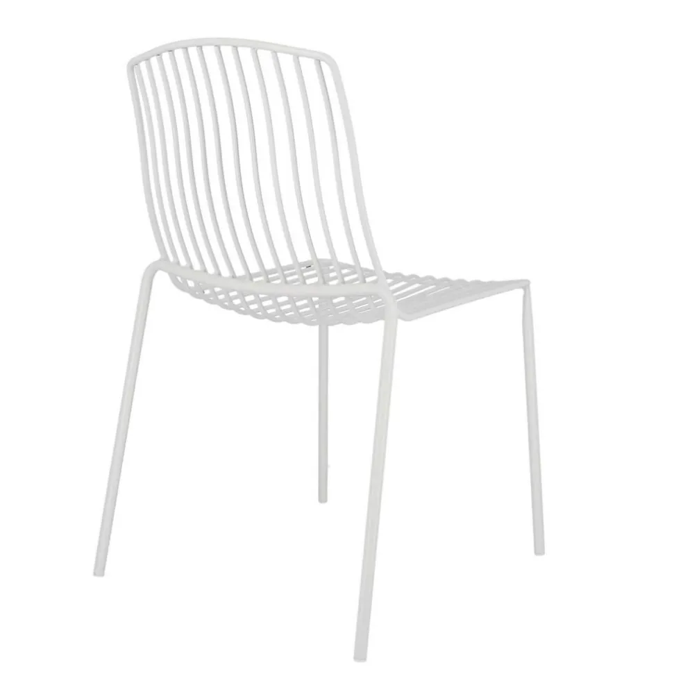 Sowohl als schicker Solist als auch als Teil einer Sitzgruppe macht der Mori Gartenstuhl eine gute Figur, ob mitten auf der Wiese oder auf der Terrasse. Sein Design zeichnet sich durch Metallstreben aus, die von der oben abgerundeten Rückenlehne fließend in die Sitzfläche übergehen und für eine luftige Optik sorgen. Runde, schlanke Beine tragen zusätzlich zum leichten Erscheinungsbild des Modells bei. Hergestellt aus pulverbeschichtetem Stahl, ist der Stuhl robust und wetterbeständig. Unterschiedliche Farbvarianten erfrischen allein oder in Kombination jeden Garten. Das stapelbare Design des Gartenstuhls ermöglicht eine platzsparende Aufbewahrung und ist damit auch auf einem kleinen Balkon ideal.