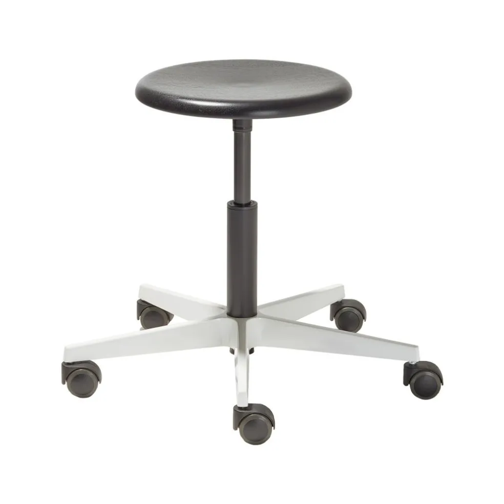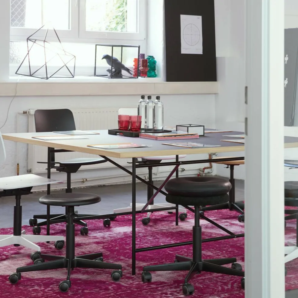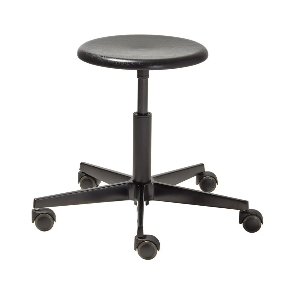 Mit seinen kompakten Abmessungen ist der Mr. Round Drehhocker höhenverstellbar eine platzsparende Sitzgelegenheit und ideal für jeden Ort, an dem man kurz Platz nehmen möchte. Er passt in einen Verkaufsladen, in eine Galerie, ins Büro, in eine Praxis oder in eine Kantine und bietet sich zu Hause als zusätzliche Sitzgelegenheit für unerwarteten Besuch an. Sein runder Sitz weist eine sanfte Mulde auf und verspricht ein angenehmes Sitzgefühl. Für einen stabilen Stand bei maximaler Flexibilität sorgt das fünfteilige Fußkreuz aus pulverbeschichtetem Aluminiumguss mit drehbaren Rollen. Damit lässt sich der Mr.-Round-Drehhocker auf allen festen Böden leicht bewegen. Der Sitz ist aus massivem Eichenholz gefertigt und lackiert. Er verleiht dem Hocker eine natürliche Note und steht in verschiedenen Farben zur Auswahl.