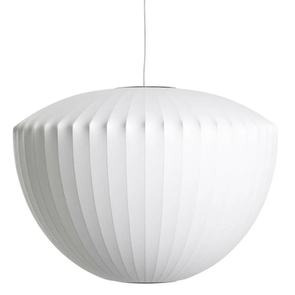 Das Design der Nelson Apple Bubble Pendelleuchte entwickelte George Nelson schon in den 40er Jahren, nach einer erfolglosen Suche nach einer passenden Beleuchtung für sein Büro. Die Basis des Leuchtenschirms bildet ein Metallgestell, welches Nelson mit einer dünnen Schicht Kunststoff übersprühte. So entstand ein innovativer neuartiger Schirm, der das Licht durch die dünne Kunststoffoberfläche besonders sanft durchschimmern lässt. Das zeitlose Design der Pendelleuchte ist auch heute noch angesagt und so kreierte George Nelson ein Leuchtenmodell, das Sie auch noch nach Jahren erfreuen wird. Egal ob Sie die Pendelleuchte im Arbeitszimmer, im Wohnzimmer, im Schlafzimmer oder im Flur anbringen – sie verleiht jedem Raum ein wenig Eleganz und passt durch ihren minimalistischen Look zu so gut wie jedem Einrichtungsstil.
