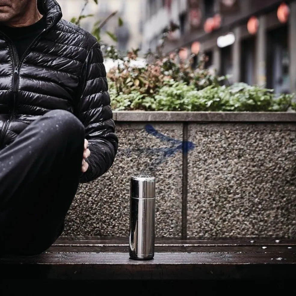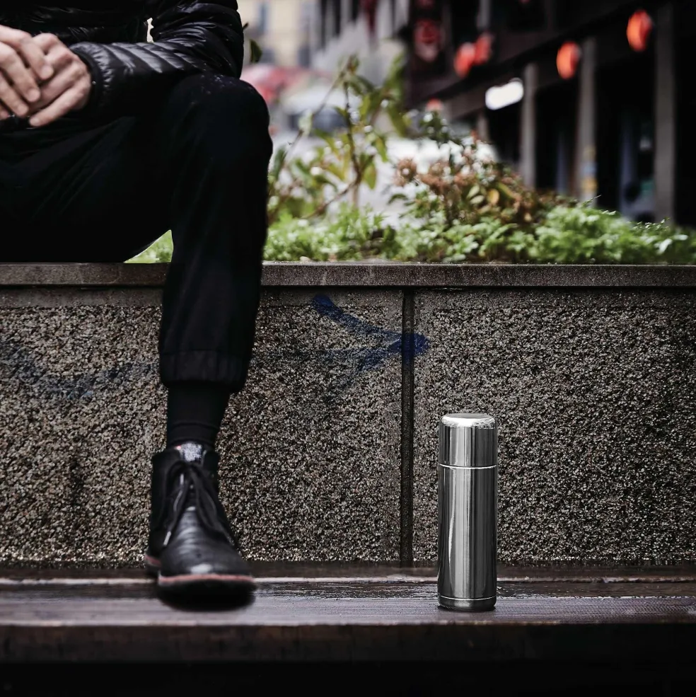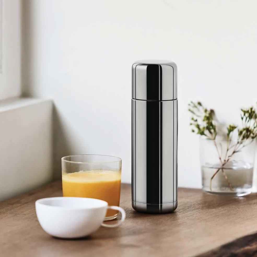 Die anmutige Nomu Thermoskanne wurde von dem japanischen Designer Naoto Fukasawa für den Hersteller Alessi entworfen. Das bewusst schlicht gehaltene Designerstück überzeugt durch seine gerade Linienführung und seine Auswahl hochwertiger Materialien. Die Verwendung von Edelstahl, der glänzend poliert wurde, verleiht der Thermoskanne ein besonders edles Aussehen. Die Nomu Thermoskanne mit einer Höhe von 20 cm und einem Durchmesser von 6,4 cm erweist sich als idealer Begleiter an Ihrem Arbeitsplatz und in der Freizeit bei einem Picknick am Meer oder im Grünen. Mit einem Fassungsvermögen von ungefähr 0,3 Litern eignet sie sich insbesondere für das Mitnehmen heißer Getränke wie Tee oder Kaffee.
