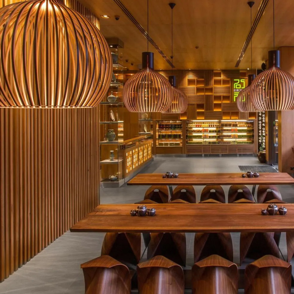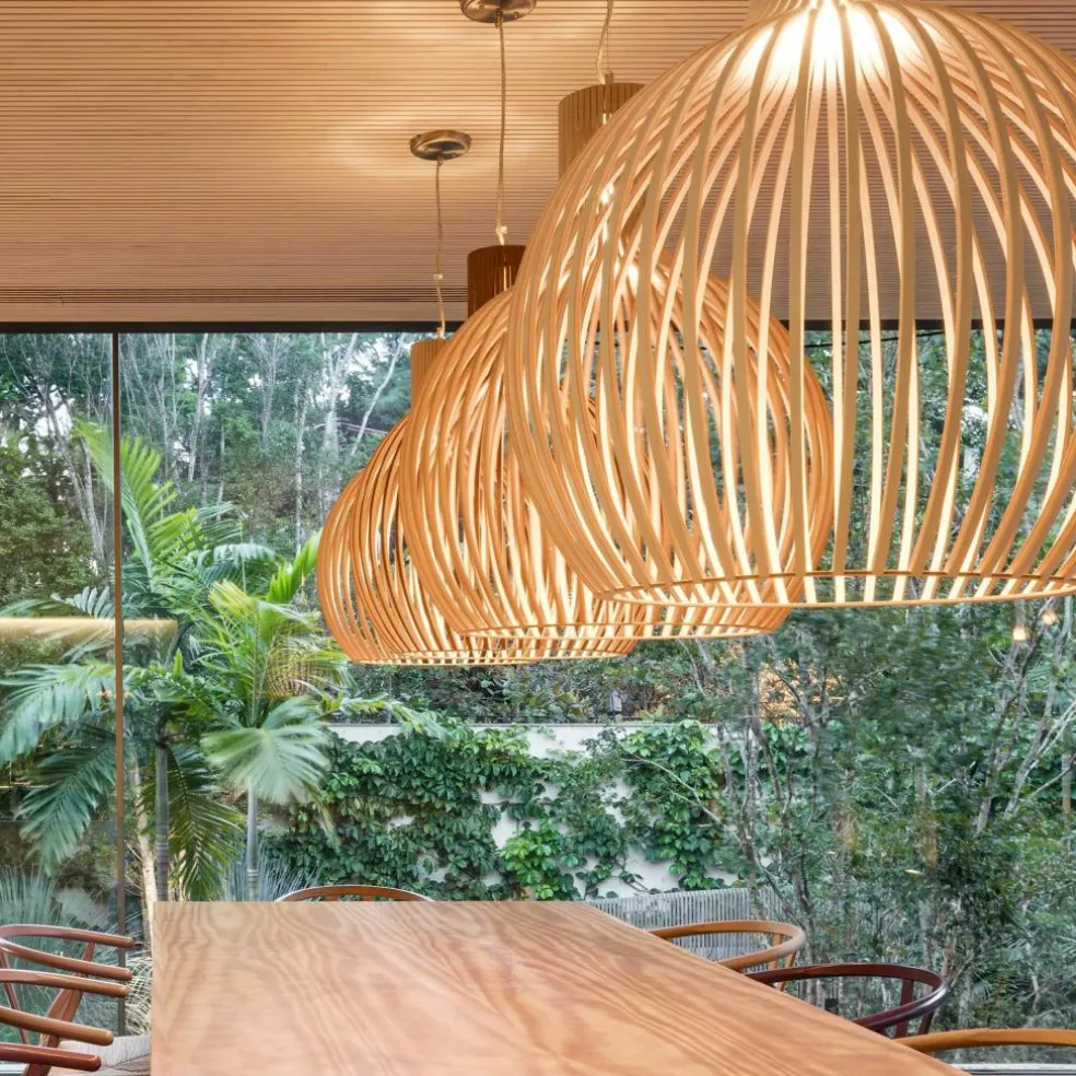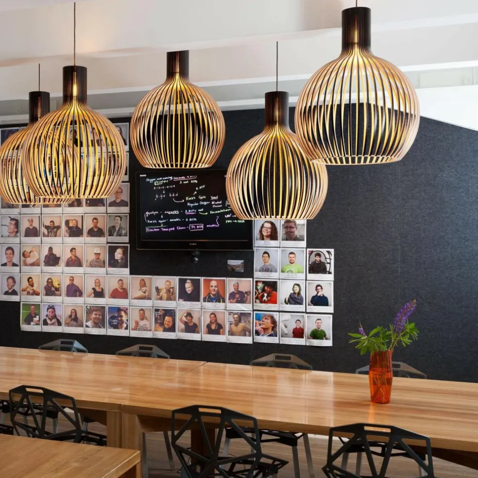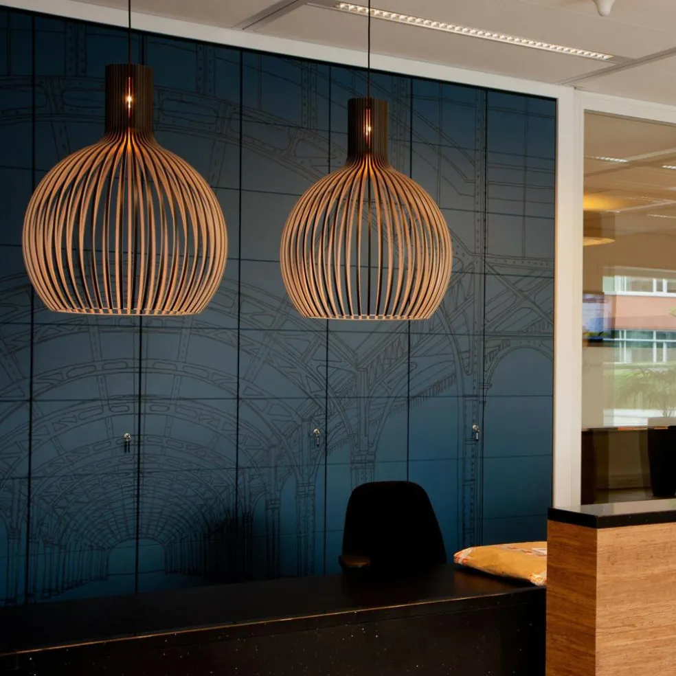 Einzig erfahrene, finnische Fachleute werden mit der anspruchsvollen Herstellung der Octo 4240 Pendelleuchte beauftragt. Durch die Biegung des Schichtholzes und die geschickte Konstruktion der Lampe kann jegliches Blenden durch das Licht vermieden werden.