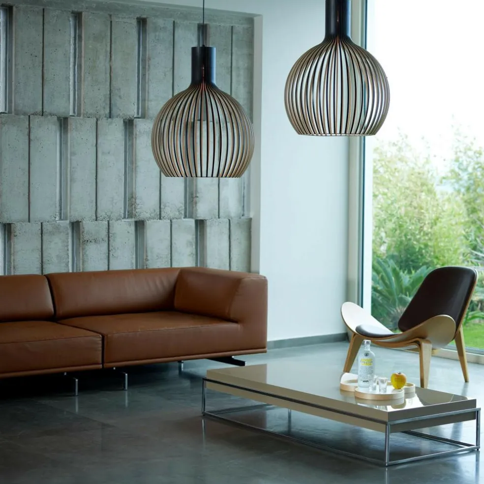 Die Octo 4240 Pendelleuchte ist vom finnischen Designer Seppo Koho für den Hersteller Secto Design entworfen wurden. Sie trägt die klassische skandinavische Handschrift, bei der das Design auf wesentliche Aspekte beschränkt ist.