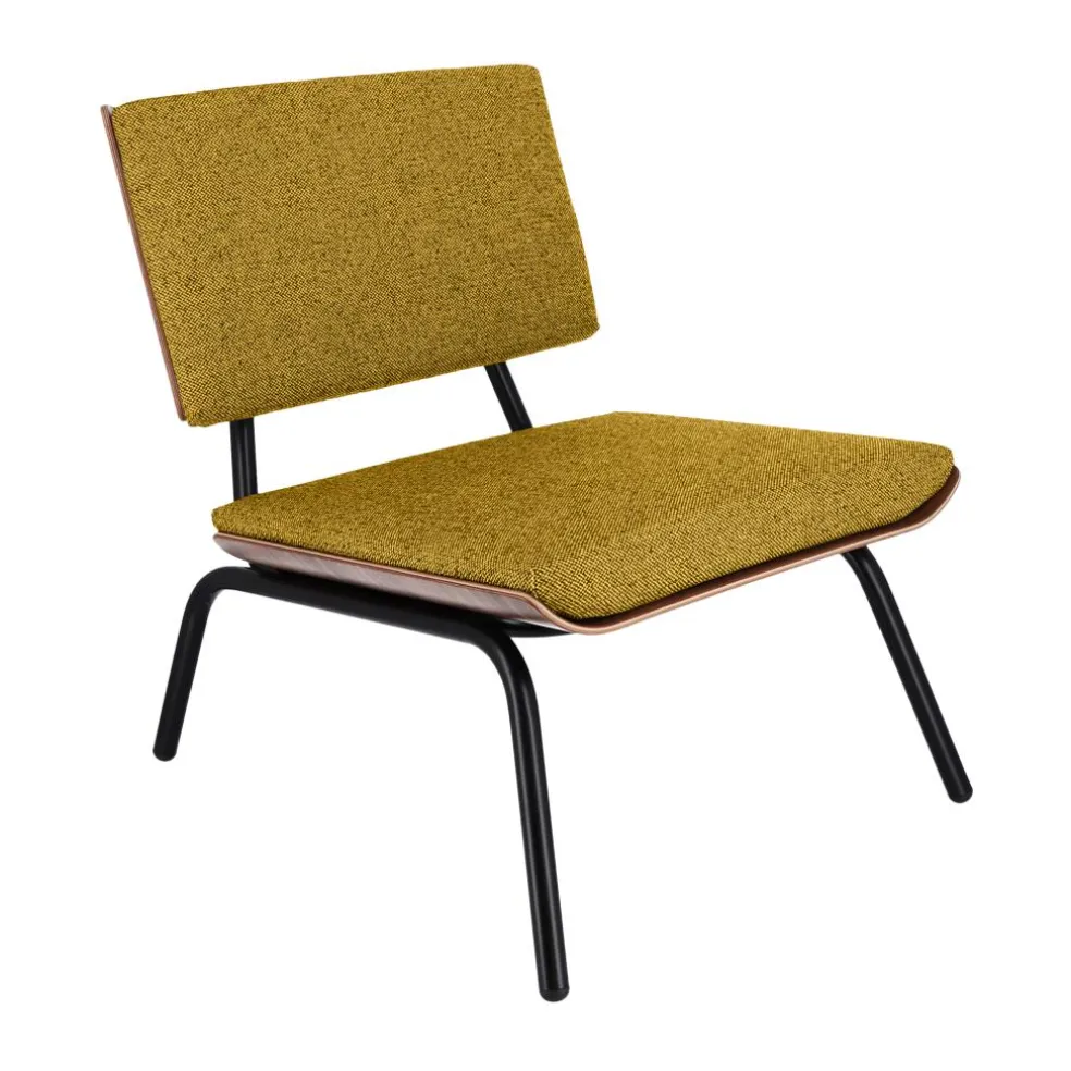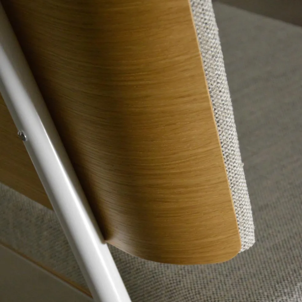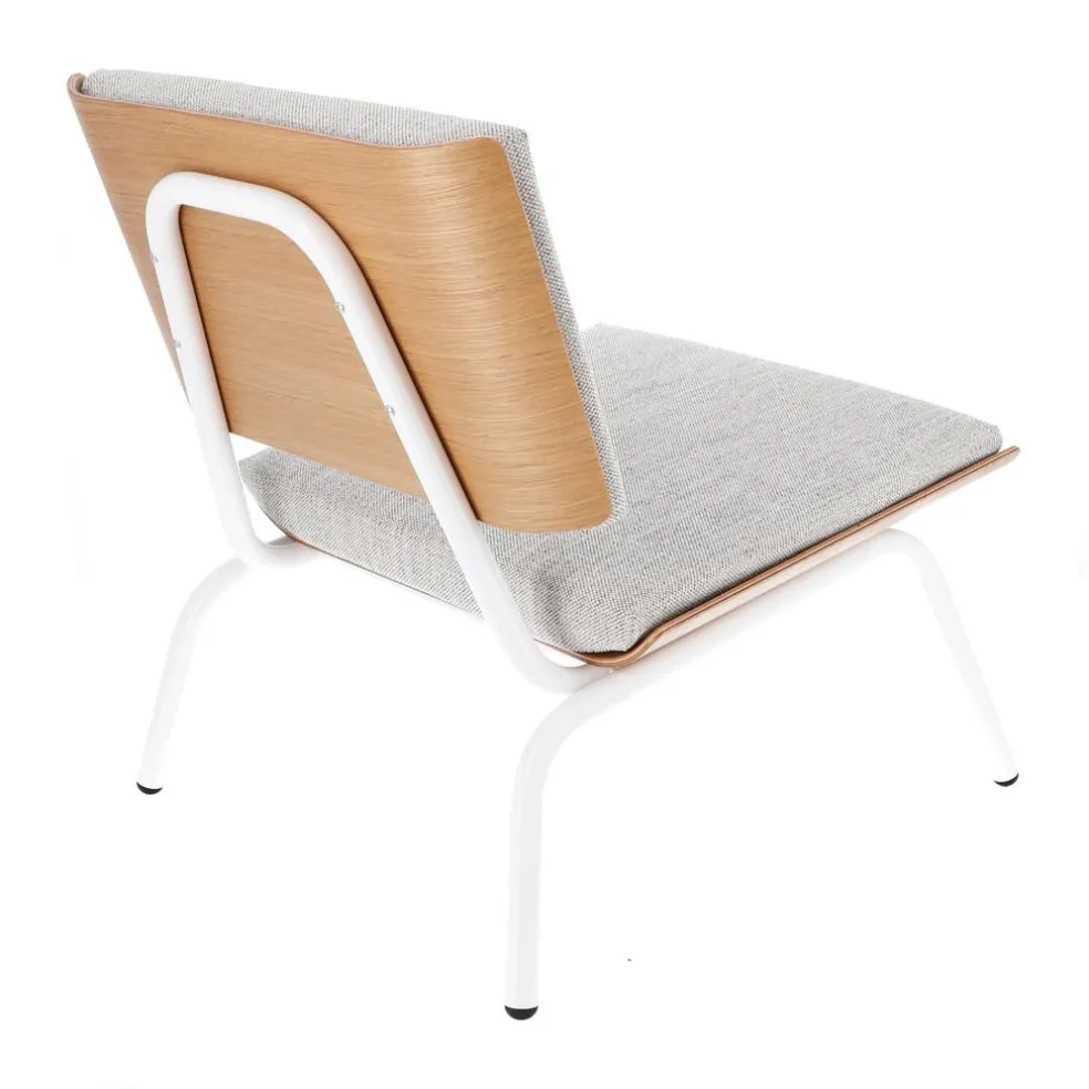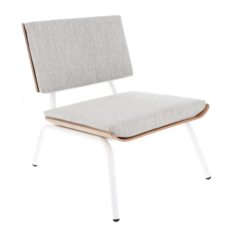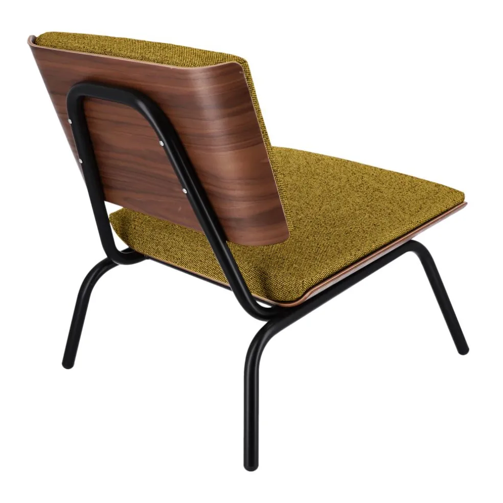 Ein Gestell aus gebogenem Stahlrohr, an den Seitenrändern aufgebogene Platten aus Schichtholz und einladend weiche Polster bilden die Grundbestandteile dieses Designsessels. Sitzfläche und Lehne sind mit einem hochwertigen Bouclé-Stoff aus Polyester bezogen. Ihm verdankt der Olaf Sessel seine langlebige Strapazierfähigkeit. Für einen angenehmen Sitzkomfort sorgen die Polsterungen, deren rechteckige Form und hohen Kanten einen raffinierten Kontrast zu ihrem auffällig schmalen, gebogenen Untergrund bilden. Dieser besteht aus Holz und ist wahlweise mit hochwertigem Eichen- oder Nussbaumfurnier beschichtet. Seine zarte Maserung verleiht dem Olaf Sessel einen eleganten Touch. Gleichzeitig garantiert die Stahlkonstruktion mit ihren weit ausgestellten Beinen eine hohe Belastbarkeit und Stabilität. In dezenter Farbe lackiert lässt sich das Designmöbel in verschiedenste Wohnräume einfügen. So passt der Olaf Sessel ebenso in eine stylishe Bar oder Lounge wie in die Lobby eines Designhotels oder ins Wohnzimmer.