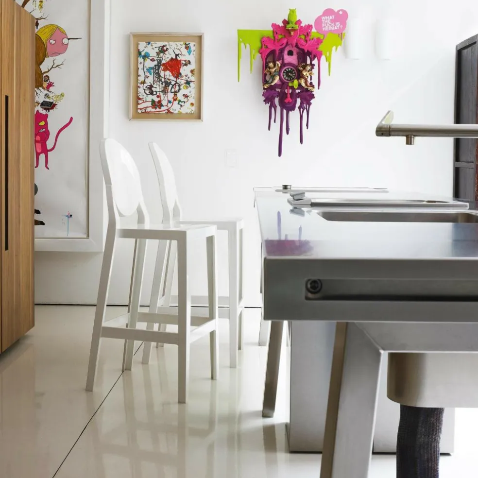Der elegante, beinahe extravagante One More Barhocker 65cm wurde von Designer Philippe Starck für den Hersteller Kartell entworfen. Im Mittelpunkt stand die Aussage: Um einen Drink entspannt an der Theke zu genießen, wird ein Stuhl benötigt, der bequem ist und eine hohe Lehne hat, um den Rücken zu stützen. Darüber hinaus präsentiert sich der Hocker als farbig, haltbar, immer beweglich und unglaublich praktisch.