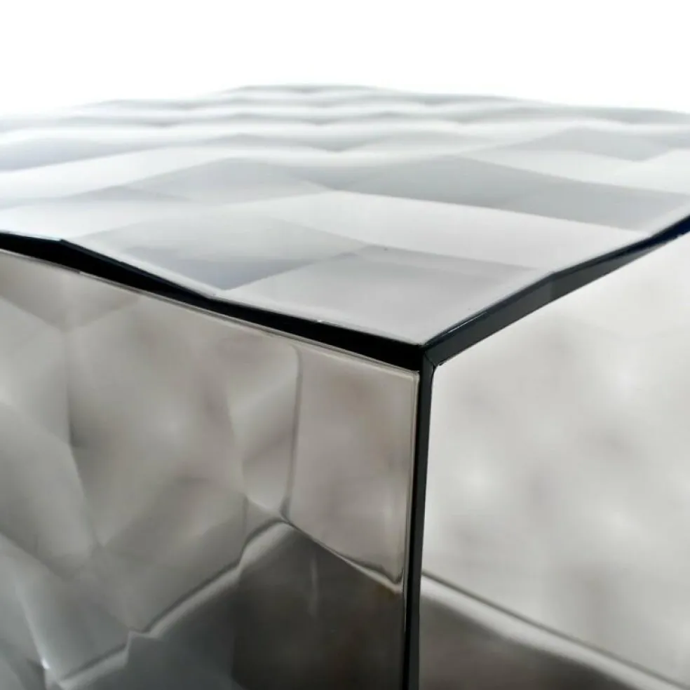 Wie viele Entwürfe von Jouin fällt auch der Optic Containerkubus mit einer innovativen Verarbeitungstechnik auf. Er bearbeitet robustes PMMA so, dass es zu faszinierenden Lichtbrechungen kommt. In die Oberfläche arbeitet er Pyramiden mit quadratischem Grundriss ein. In dem daraus entstehenden Relief brechen sich Lichtstrahlen und zaubern ein bemerkenswertes Spiel von Licht und Schatten in das Umfeld. Der Optic Containerkubus ist als transparente oder getönte Version zu haben. Er ist vielseitig einsetzbar, kann nebeneinander oder einzeln aufgestellt oder sogar gestapelt werden. So entstehen stilvolle Aufbewahrungsboxen oder moderne Beistelltische. Es gibt den Optic Containerkubus als offenes Modell oder mit einer Tür. Je nachdem wie der Optic Containerkubus kombiniert wird, dient er als Raumteiler, Nachttisch oder Ablagefläche im Büro oder Homeoffice.