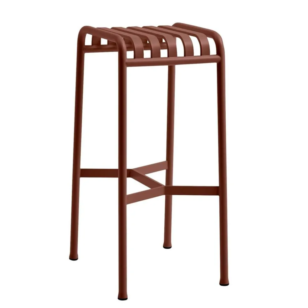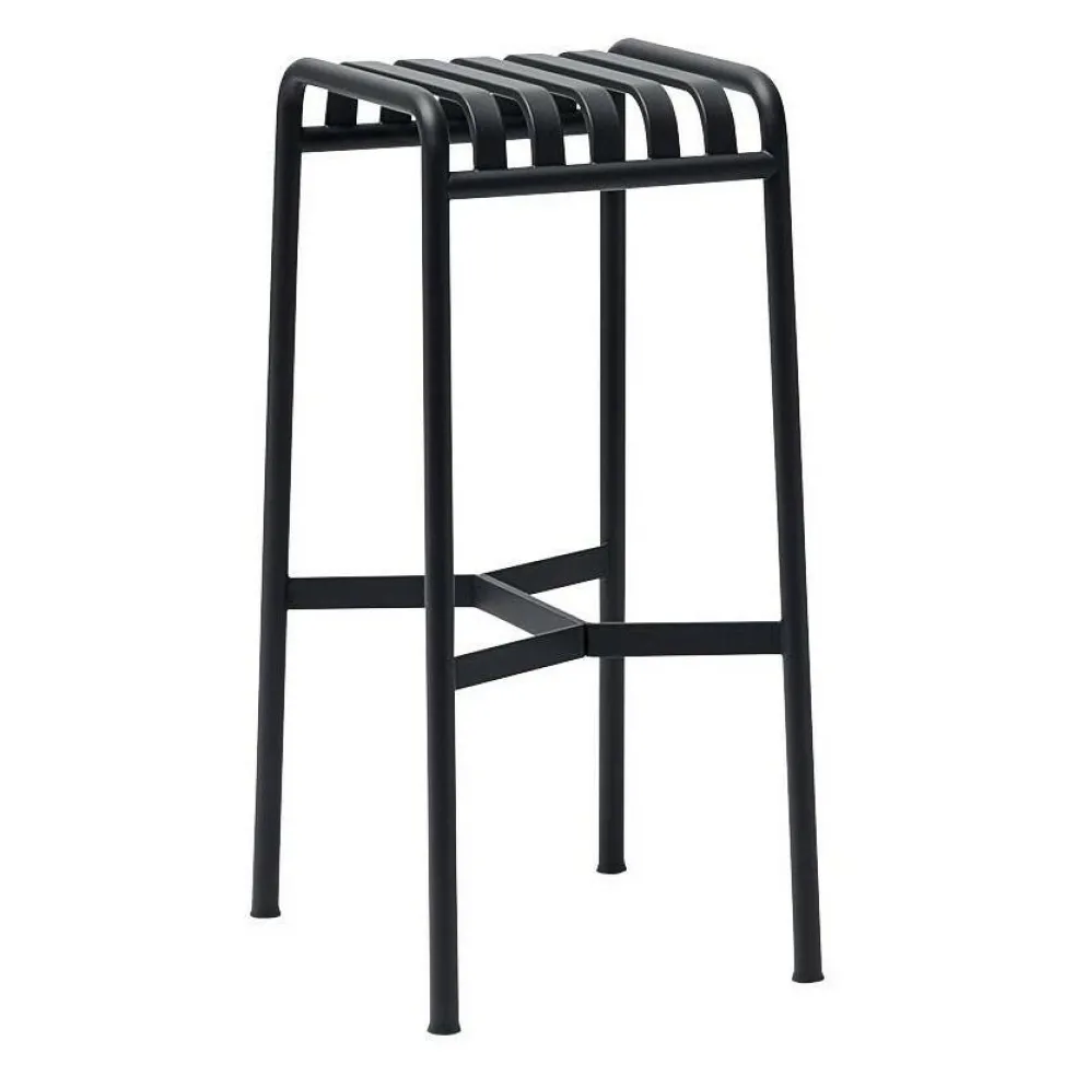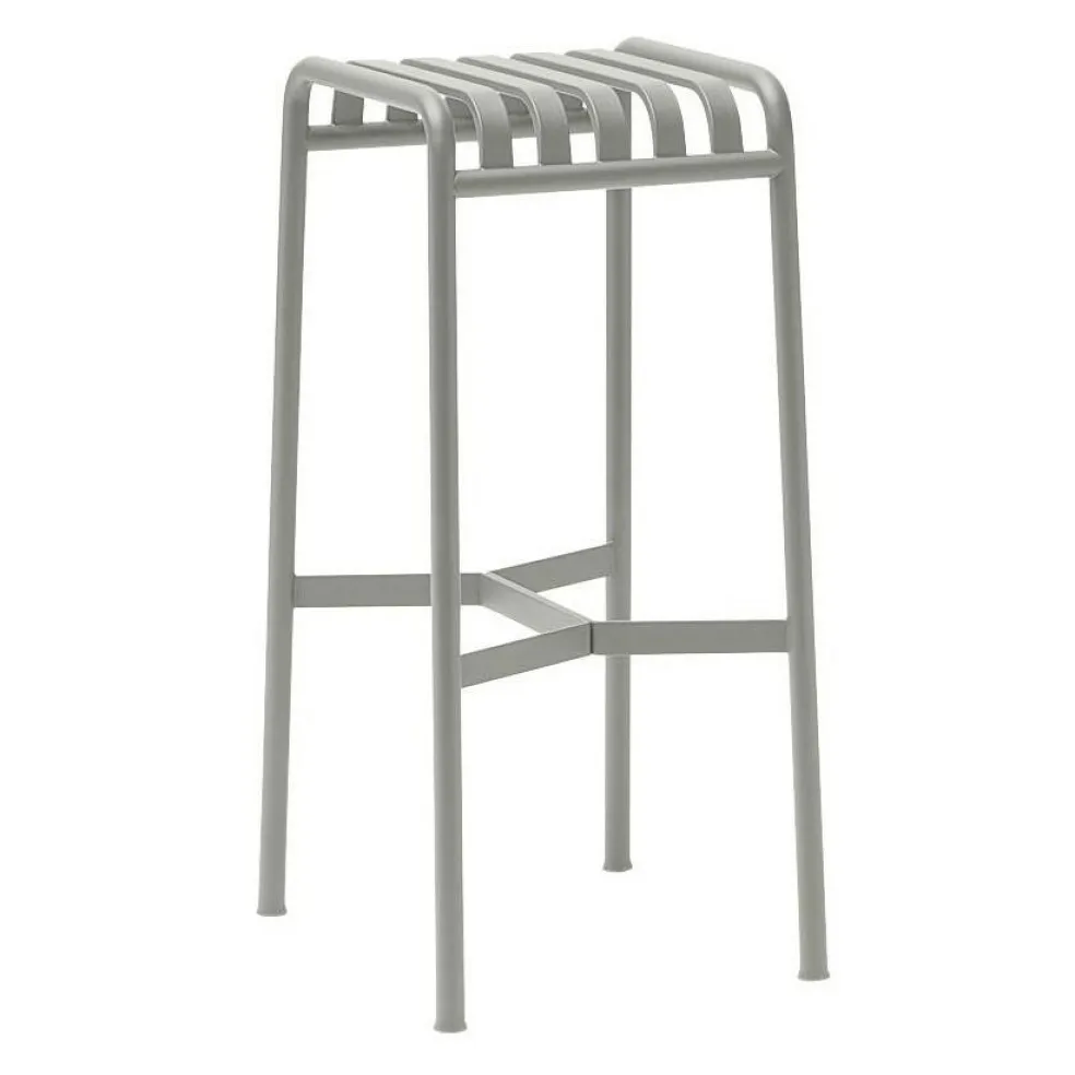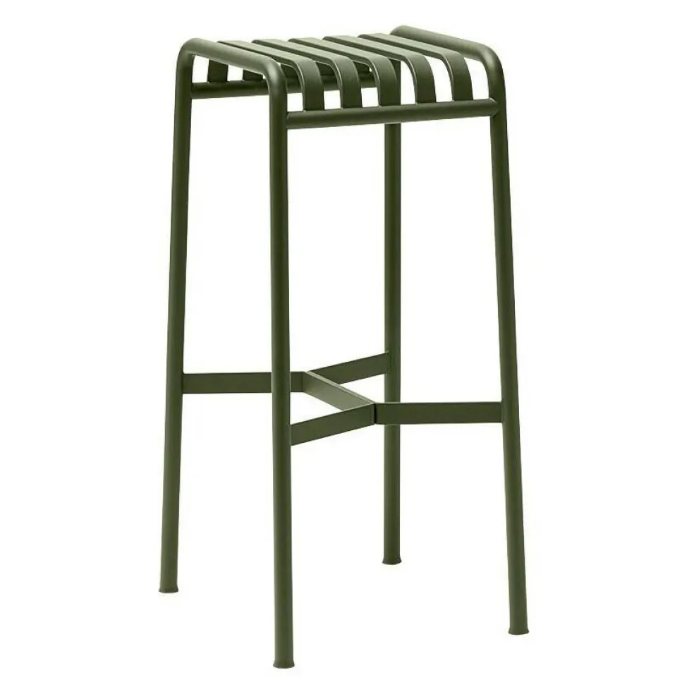 Der Palissade Barhocker 78cm wurde von Ronan und Erwan Bouroullec für die Marke HAY entworfen. Als Teil der Palissade-Outdoorserie ist der Hocker von geradlinigen Elementen und gestreiften Flächen gekennzeichnet. Sein Design fällt mit einer symmetrischen Geometrie auf, die sich ebenso gut in einen modern gestalteten wie in einen natürlichen Hintergrund einfügt.