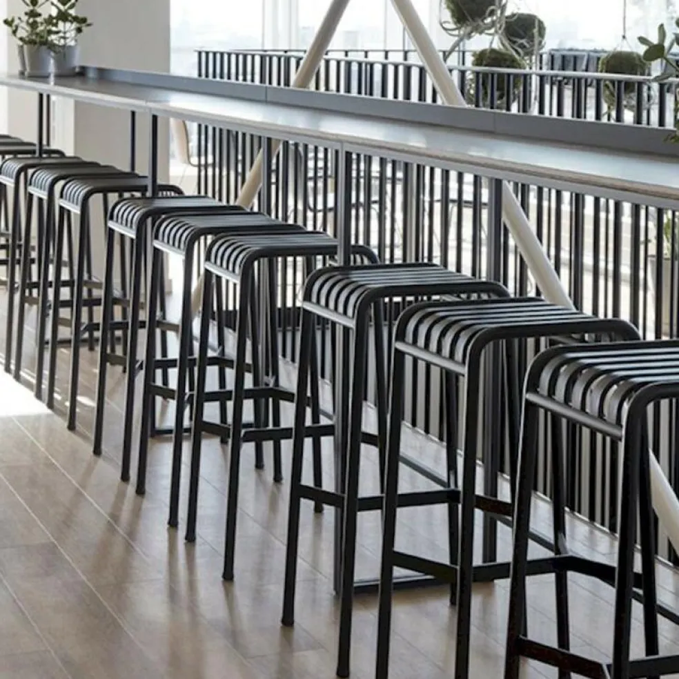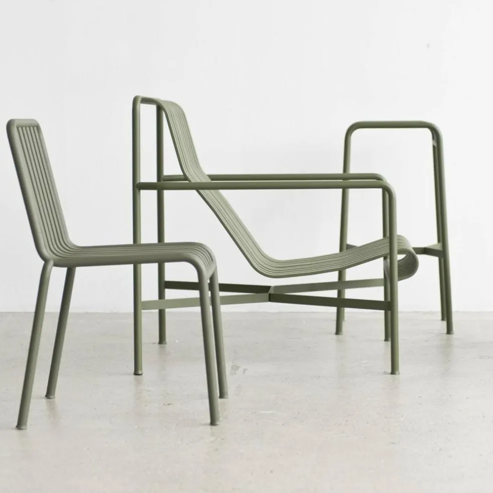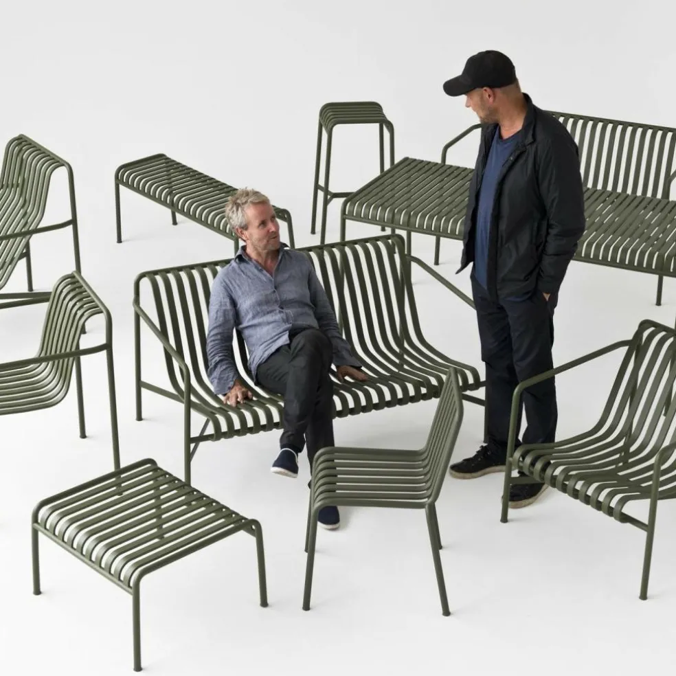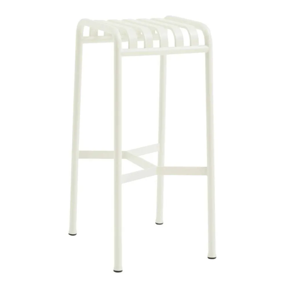 Der Palissade Barhocker 78cm wurde von Ronan und Erwan Bouroullec für die Marke HAY entworfen. Als Teil der Palissade-Outdoorserie ist der Hocker von geradlinigen Elementen und gestreiften Flächen gekennzeichnet. Sein Design fällt mit einer symmetrischen Geometrie auf, die sich ebenso gut in einen modern gestalteten wie in einen natürlichen Hintergrund einfügt.
