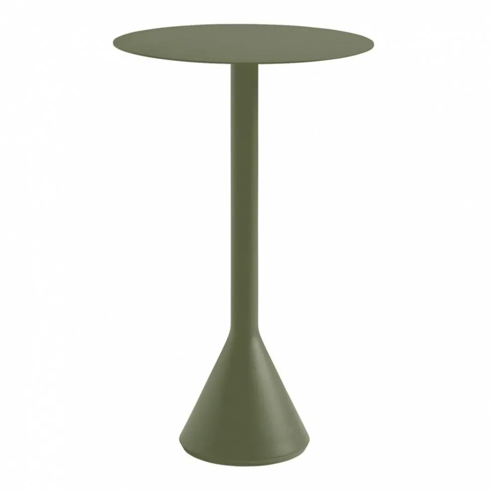 Der Palissade Cone Gartentisch Ø60cm zeigt eine eigenständige Silhouette, die durch sein massives Fußgestell besonders betont wird. Der runde, sich nach oben stark verjüngende Sockel ist mit Beton gefüllt und verleiht dem Gartentisch eine hohe Standfestigkeit. Darauf liegt eine ultradünne Tischplatte, die den Palissade Cone Gartentisch Ø60cm filigran und elegant erscheinen lässt. Alle Elemente bestehen aus hochwertigem Stahl, der witterungsfest mit Pulverlack beschichtet ist.