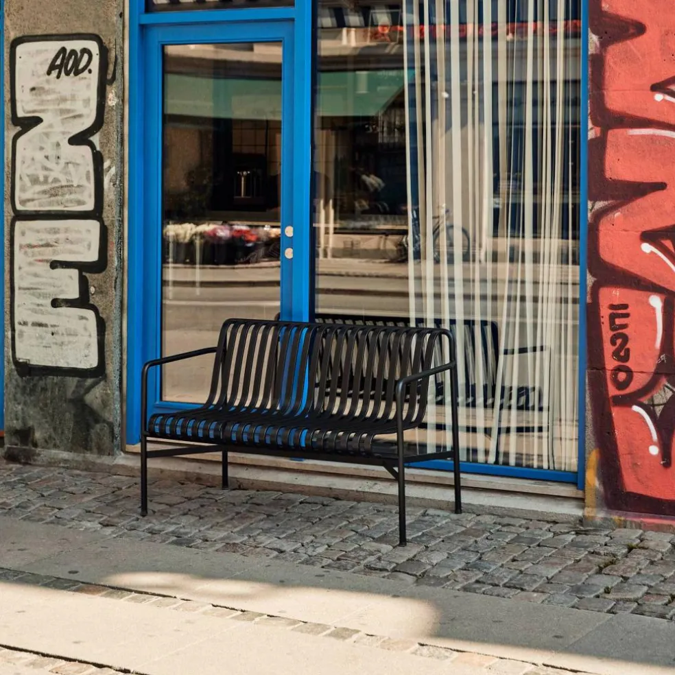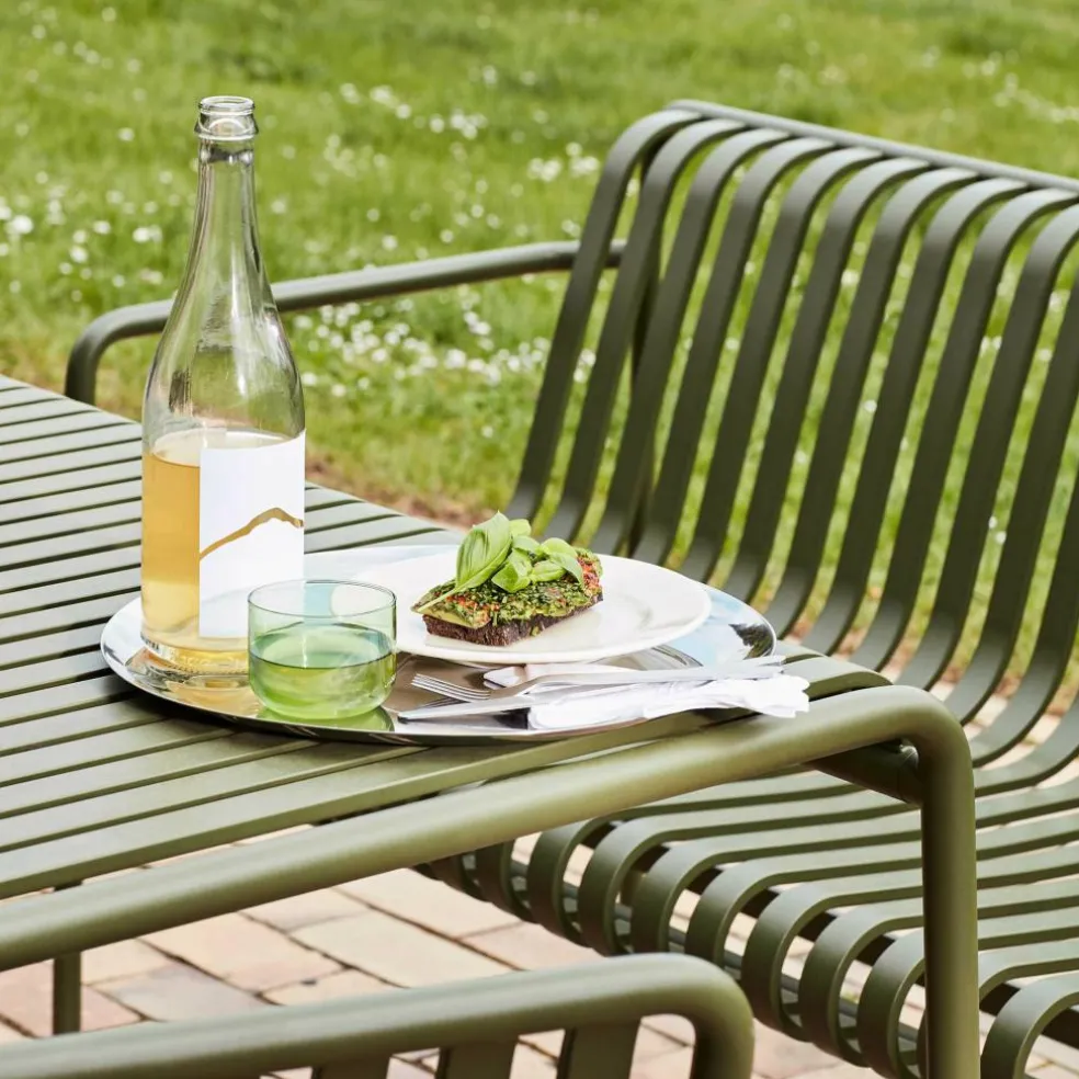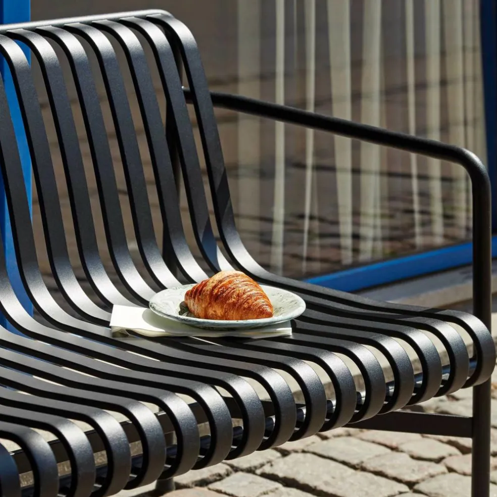 Die Palissade Dining Bench wurde von den Designern Ronan und Erwan Bouroullec exklusiv für die Marke HAY entworfen. Der dänische Hersteller verbindet die klassische Formensprache des skandinavischen Designs mit zeitgenössischen, avantgardistischen Elementen. Gemeinsam mit dem renommierten Designerduo entwickelte man diese ebenso zurückhaltende wie markant-elegante Gartenbank, die Teil der umfassenden Palissade-Outdoorserie ist.