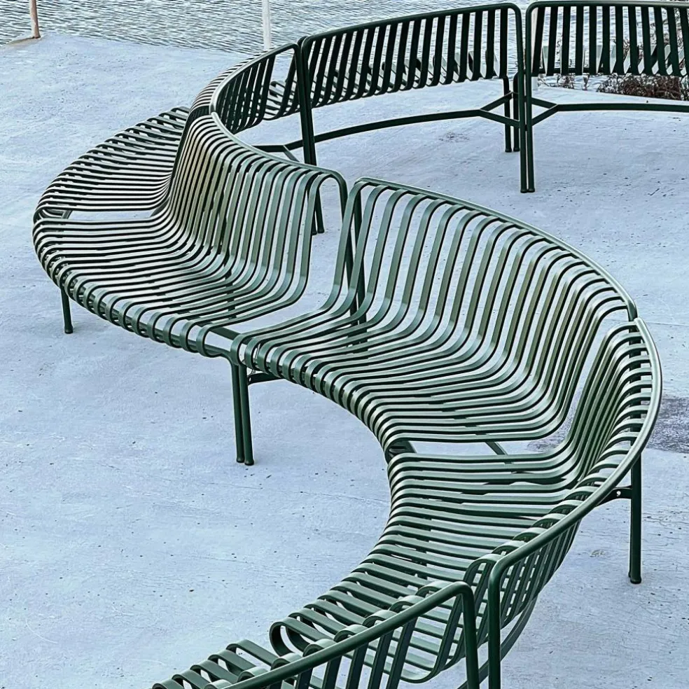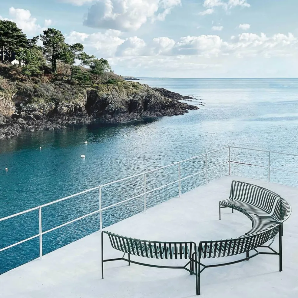 Das Palissade Dining Park Bench In/In 2er Set wurde von Erwan und Ronan Bouroullec für die Marke HAY entworfen. Es reiht sich in eine formschöne Kollektion an stilvollen Outdoormöbeln ein. Die Serie, die aus verschiedenen Modulen besteht, gibt es seit dem Jahr 2022.