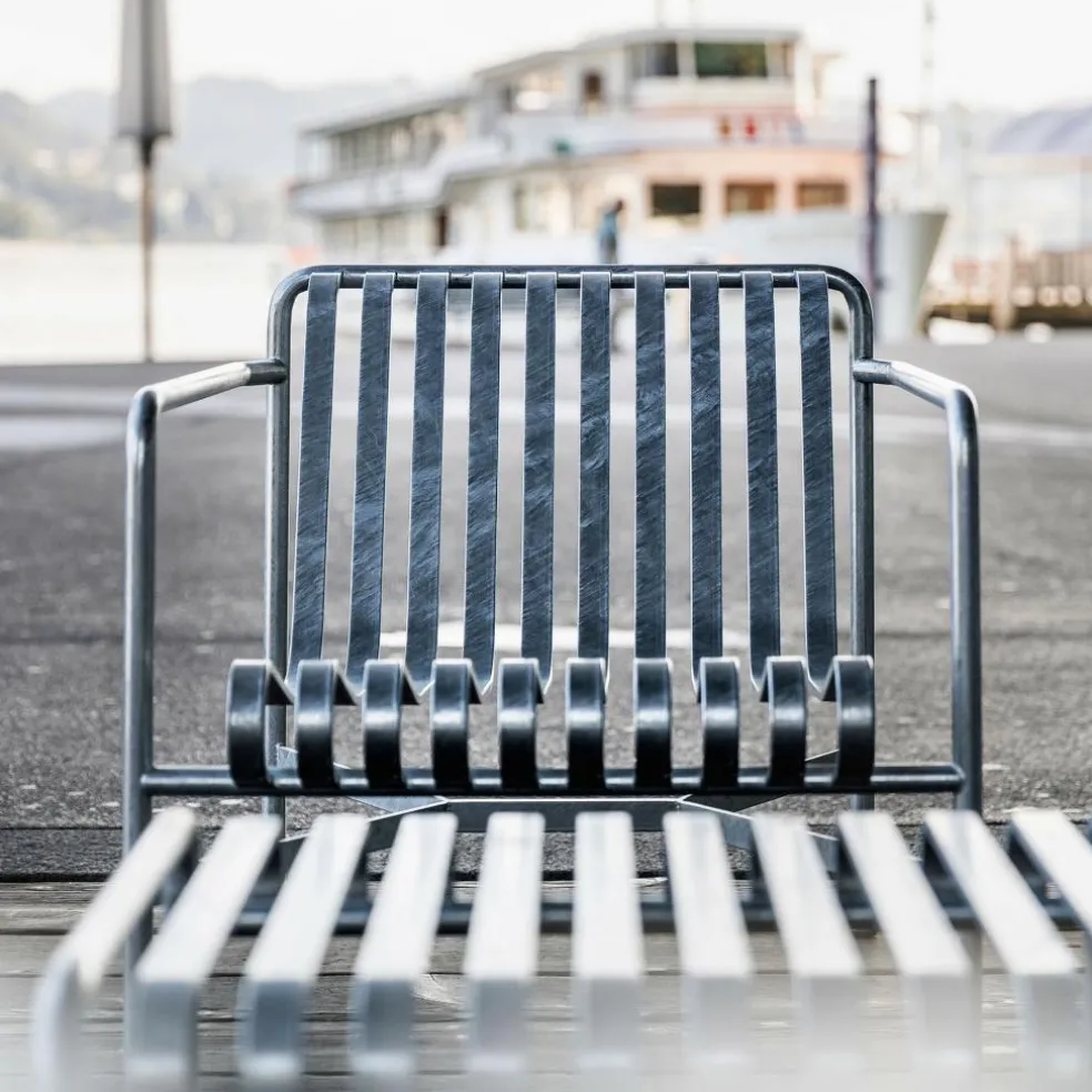 Der Palissade Garten Loungesessel niedrig Feuerverzinkt wurde von Erwan und Ronan Bouroullec für die Marke HAY entworfen. Die bequeme Sitzgelegenheit ist Teil einer ganzen Serie mit langlebigen Outdoor-Möbeln für die Terrasse, den Garten, das Café oder Restaurant.
