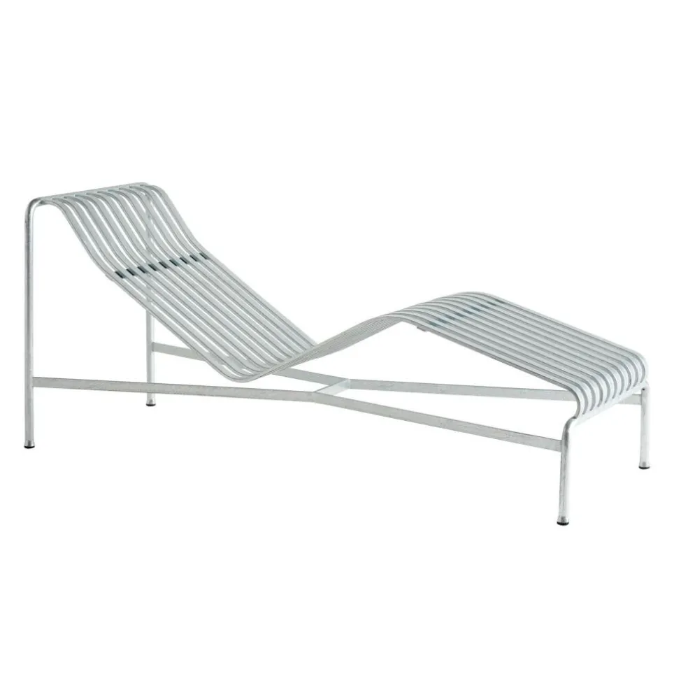 Die Palissade Gartenliege Feuerverzinkt wurde von Ronan Bouroullec und Erwan Bouroullec für die Marke HAY entworfen. Merkmal der umfassenden Palissade-Kollektion, die auch Bänke und Hocker umfasst, ist das streng geometrische Design.
