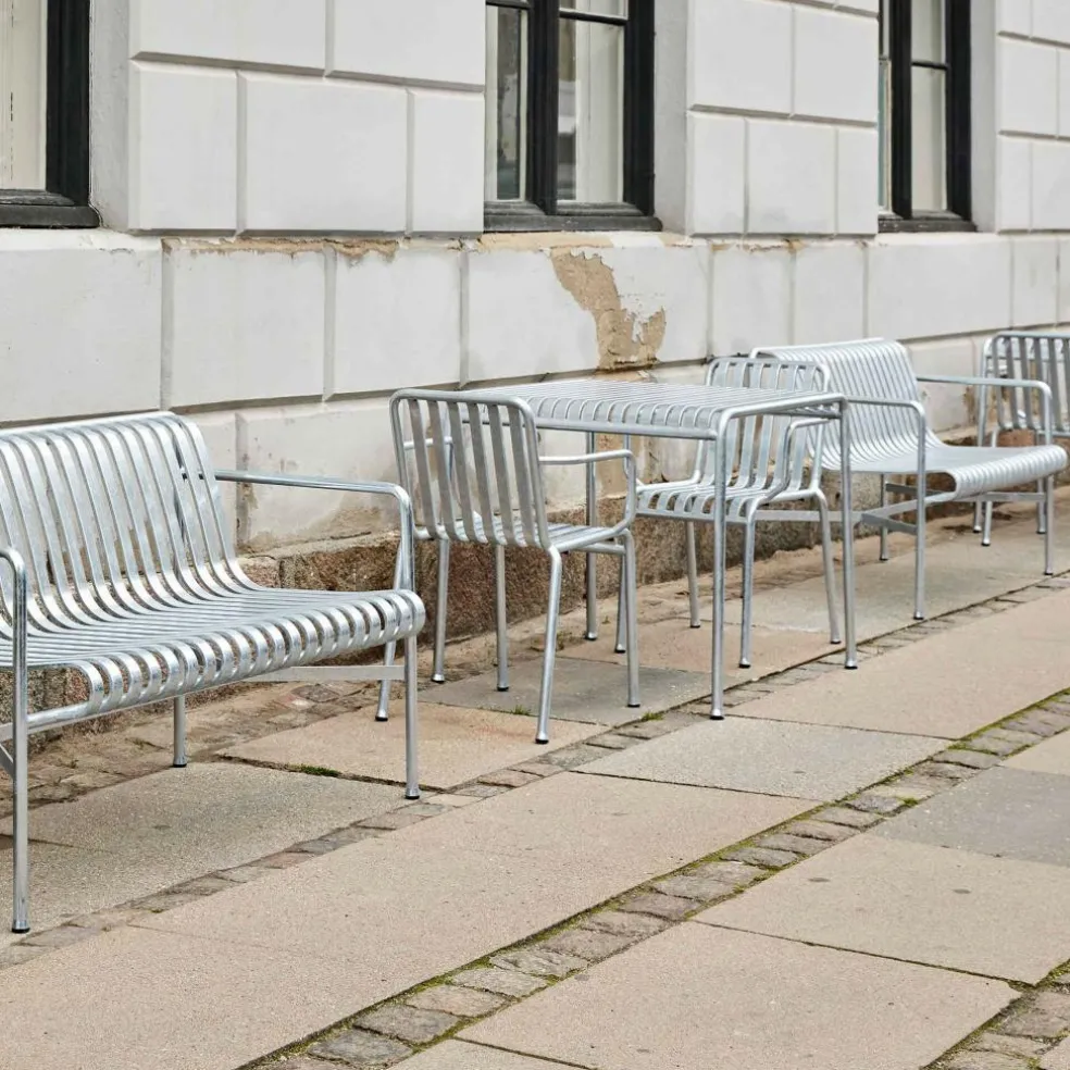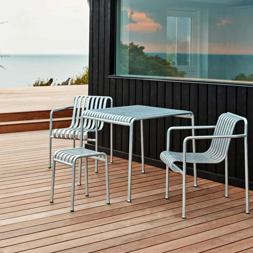 Der Palissade Gartentisch Feuerverzinkt 82,5x90cm wurde von Erwan Bouroullec und Ronan Bouroullec für die Marke HAY entworfen. Wie von den beiden französischen Designern gewohnt, präsentiert sich der Tisch in unaufdringlichem Design. Er ist Teil der umfangreichen Palissade-Serie, die neben anderen Tischformaten auch Sessel und Loungesessel umfasst.