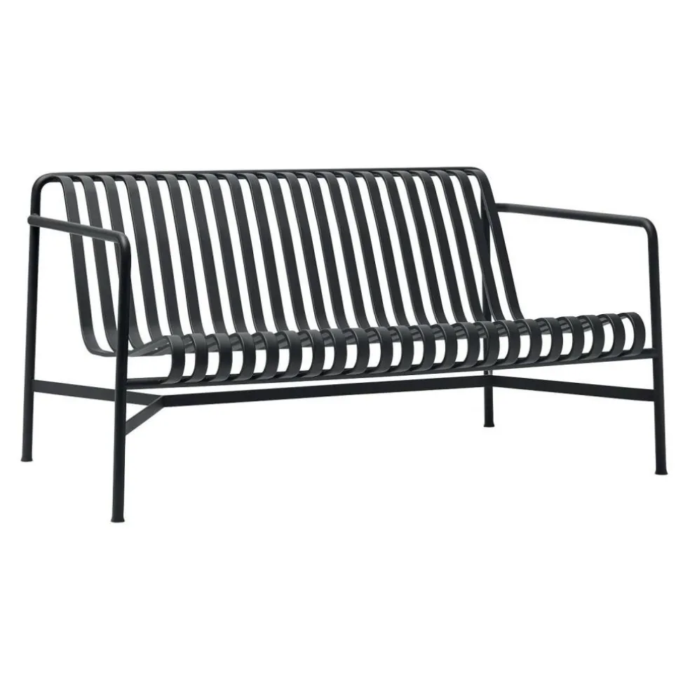 Seine ergonomische Form führt zu einem angenehmen Sitzgefühl, auch ohne Sitzauflage. Die fließende Forme des Sofas verkörpert eine Leichtigkeit wie man sie bei einem Stahlmöbel nicht erwarten würde. Durch seinen graphischen Charakter wird das Palissade Lounge Sofa auch zu einem optischen Hingucker.