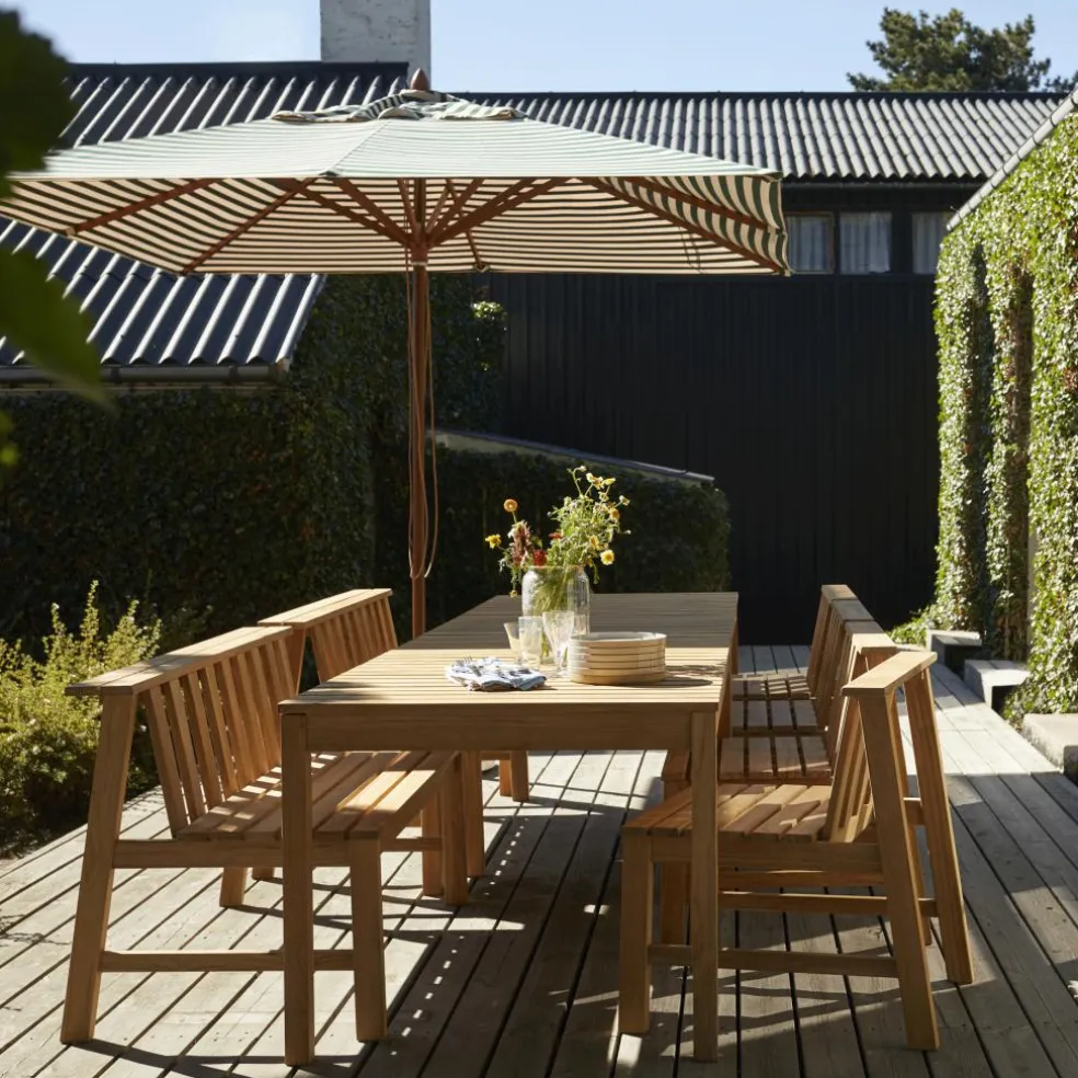 Der Plank Gartenstuhl wurde von Aurélien Barbry für die Marke Skagerak entworfen. Der dänische Designer stellt mit der Plank-Kollektion eine im skandinavischen Stil gehaltene Möbelserie vor.