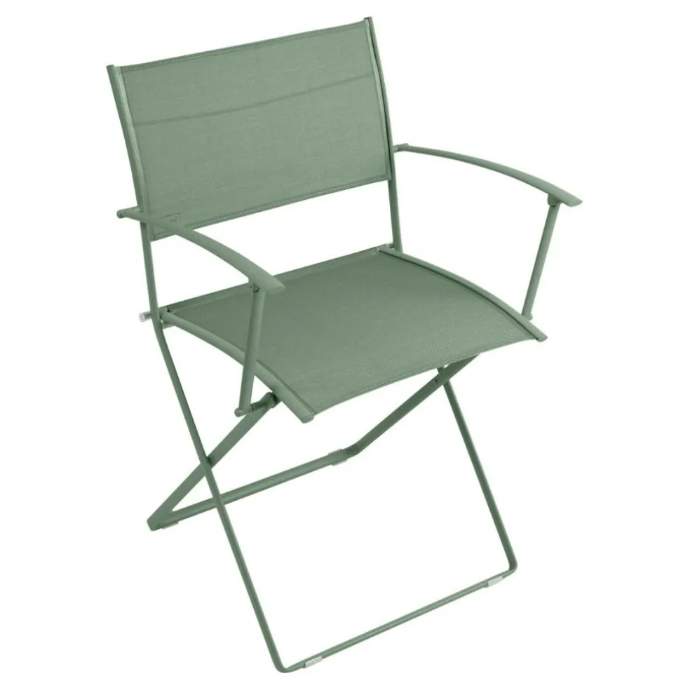 Dieser Plein Air Klappstuhl mit Armlehnen wurde von Pascal Mourgue für das französische Label Fermob entworfen. Er gehört zu der gleichnamigen Plein Air Serie, Fermobs elegante Kollektion mit klarer Linie.