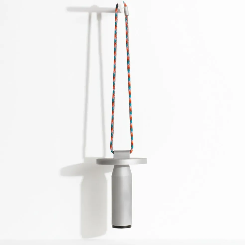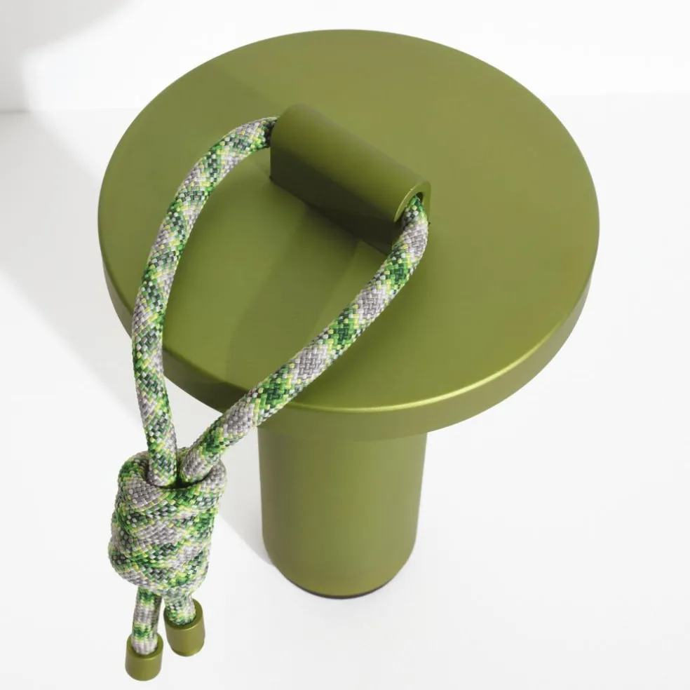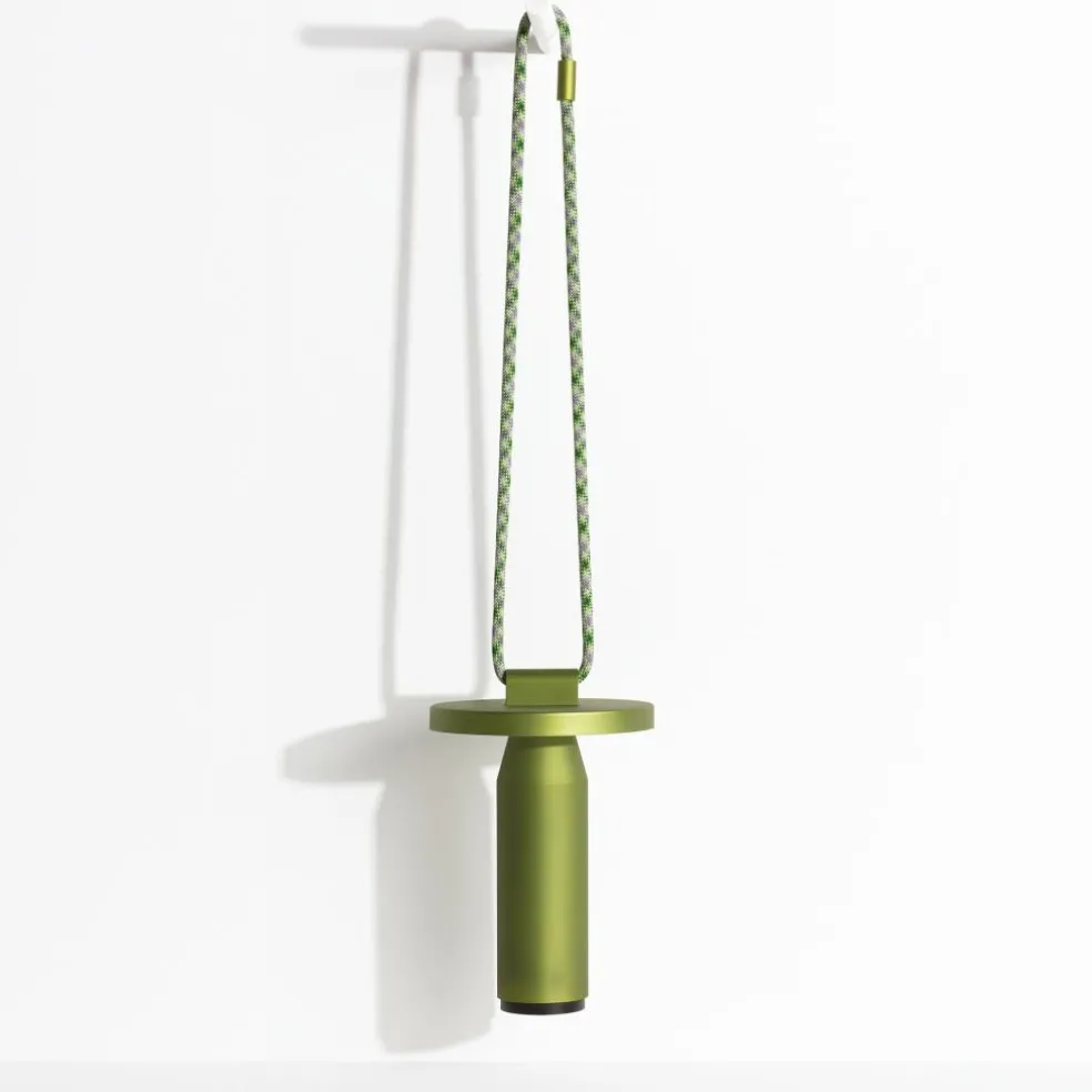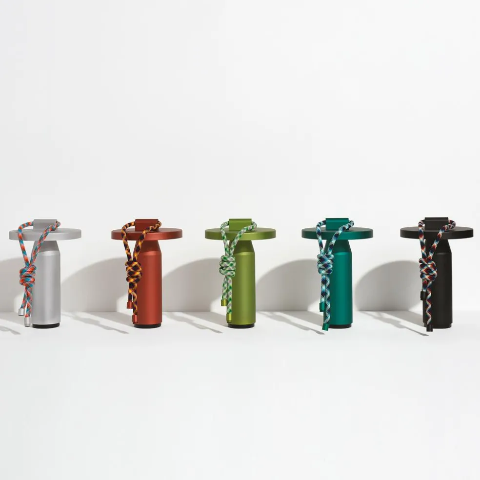 Inspiriert von den Formen von Bambusröhren besteht die Quasar LED Akkuleuchte aus geradlinigen Elementen. Sie hat eine zylindrische Basis, die sich im oberen Bereich kegelförmig verjüngt. Darüber sitzen die Leuchtmittel, abgeschirmt von einer runden Scheibe. Diese lenkt das Licht nach unten, wo es am Schaft der Quasar LED Akkuleuchte reflektiert wird. Ein Dimmer aus ABS unter der Basis erlaubt die Auswahl von drei Lichttemperaturen sowie Lichtintensitäten von 100%, 50% und 25%. So kann die Quasar LED Akkuleuchte im Garten intensiv strahlen oder indoor ein warmes und gedämpftes Licht abgeben. Bestehend aus korrosionsbeständigem Aluminium ist sie ein praktischer Reisebegleiter. Dank der UV-beständigen, 100 cm langen Polyesterschnur lässt sie sich per Knoten oder über die Metallverschlüsse an den Enden an einem Baum befestigen.