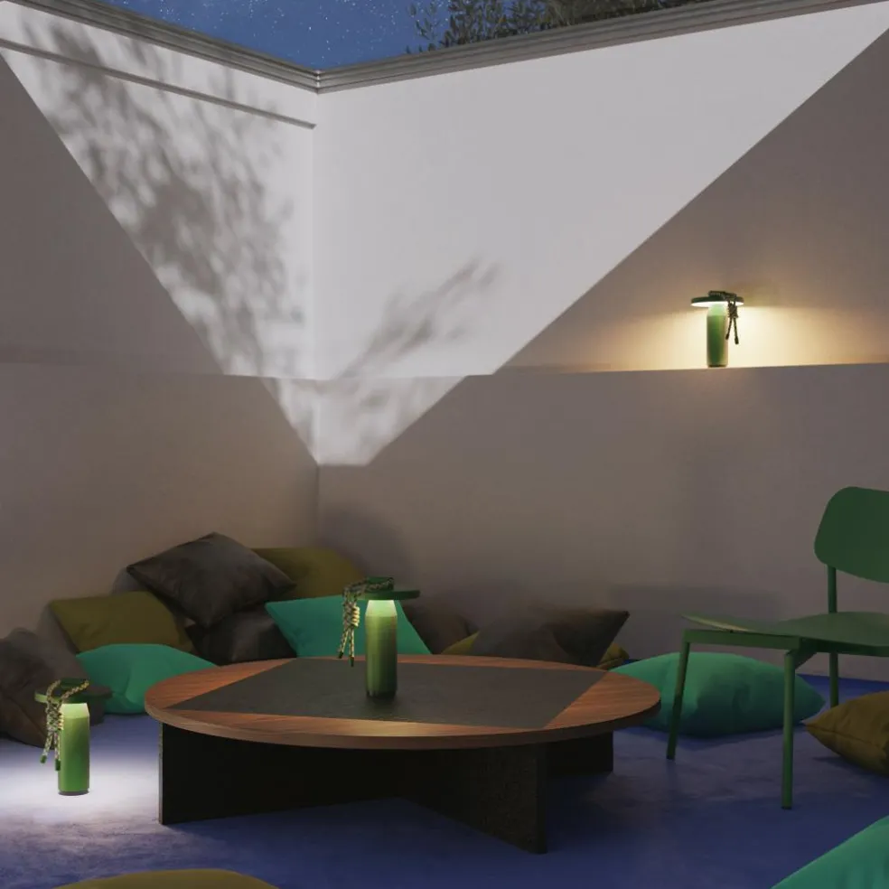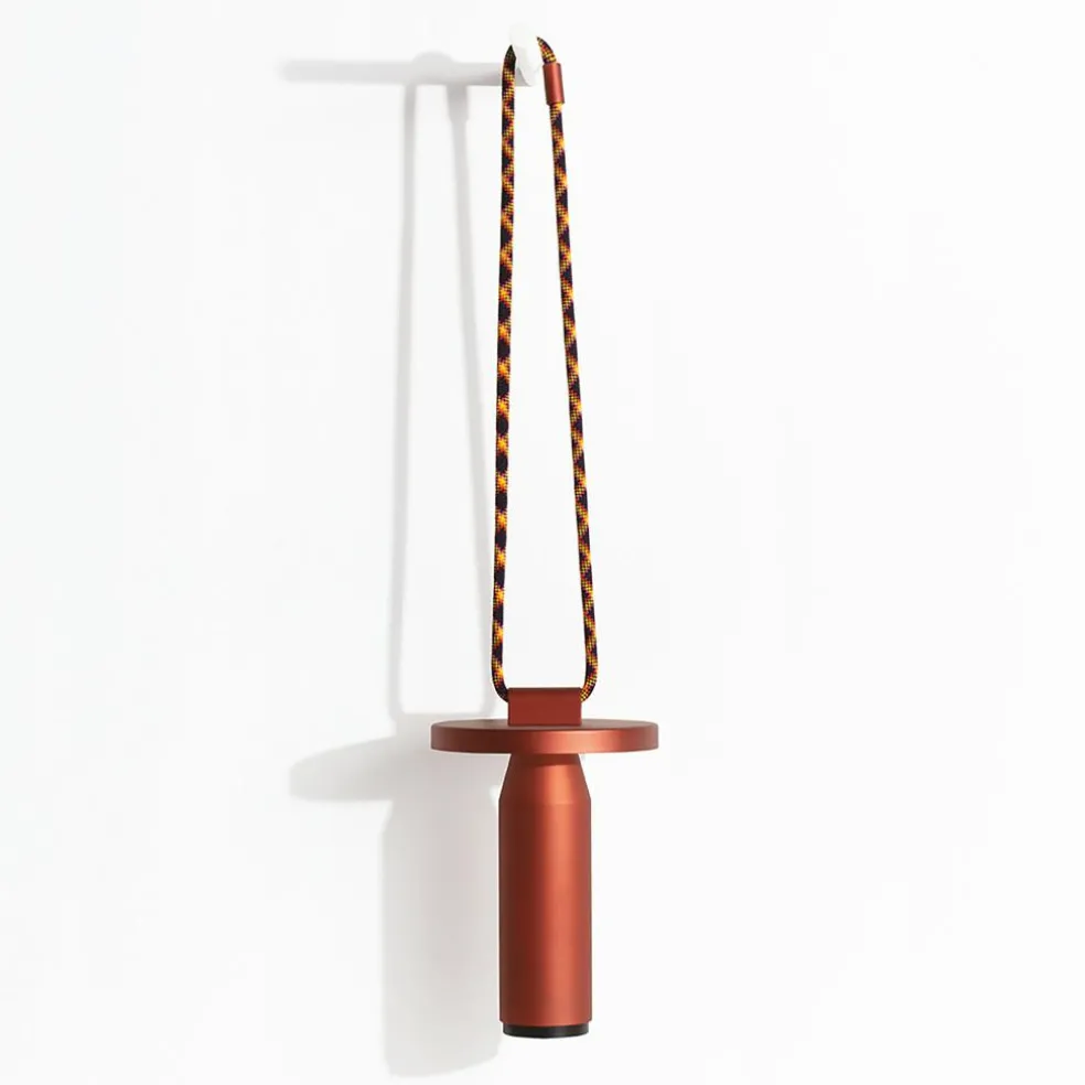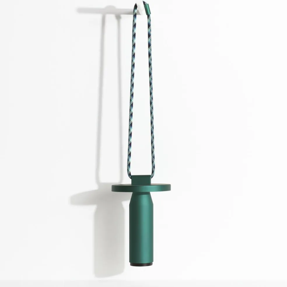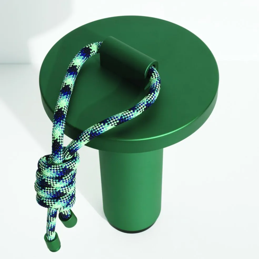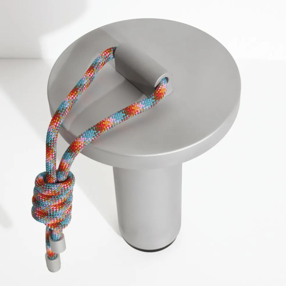 Inspiriert von den Formen von Bambusröhren besteht die Quasar LED Akkuleuchte aus geradlinigen Elementen. Sie hat eine zylindrische Basis, die sich im oberen Bereich kegelförmig verjüngt. Darüber sitzen die Leuchtmittel, abgeschirmt von einer runden Scheibe. Diese lenkt das Licht nach unten, wo es am Schaft der Quasar LED Akkuleuchte reflektiert wird. Ein Dimmer aus ABS unter der Basis erlaubt die Auswahl von drei Lichttemperaturen sowie Lichtintensitäten von 100%, 50% und 25%. So kann die Quasar LED Akkuleuchte im Garten intensiv strahlen oder indoor ein warmes und gedämpftes Licht abgeben. Bestehend aus korrosionsbeständigem Aluminium ist sie ein praktischer Reisebegleiter. Dank der UV-beständigen, 100 cm langen Polyesterschnur lässt sie sich per Knoten oder über die Metallverschlüsse an den Enden an einem Baum befestigen.