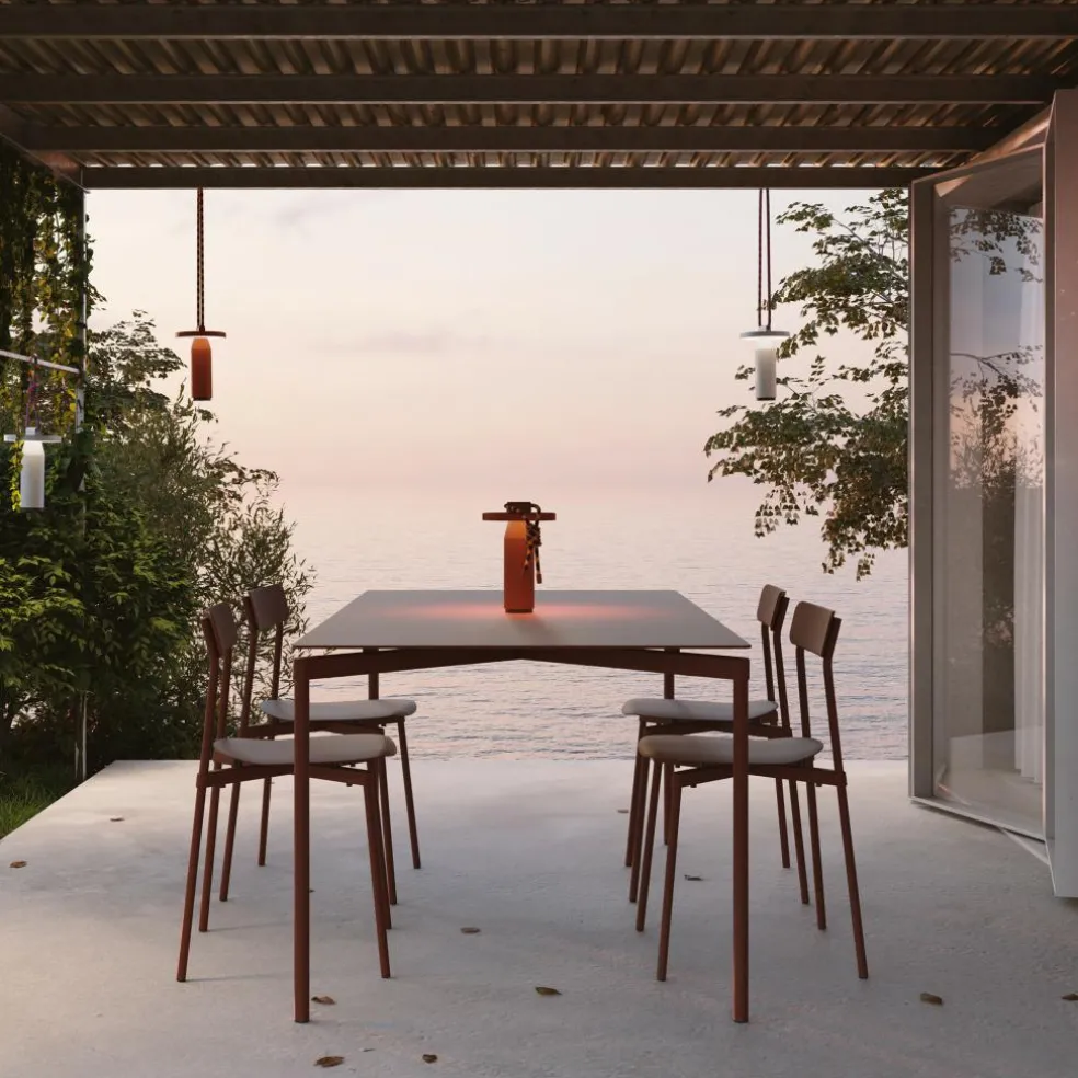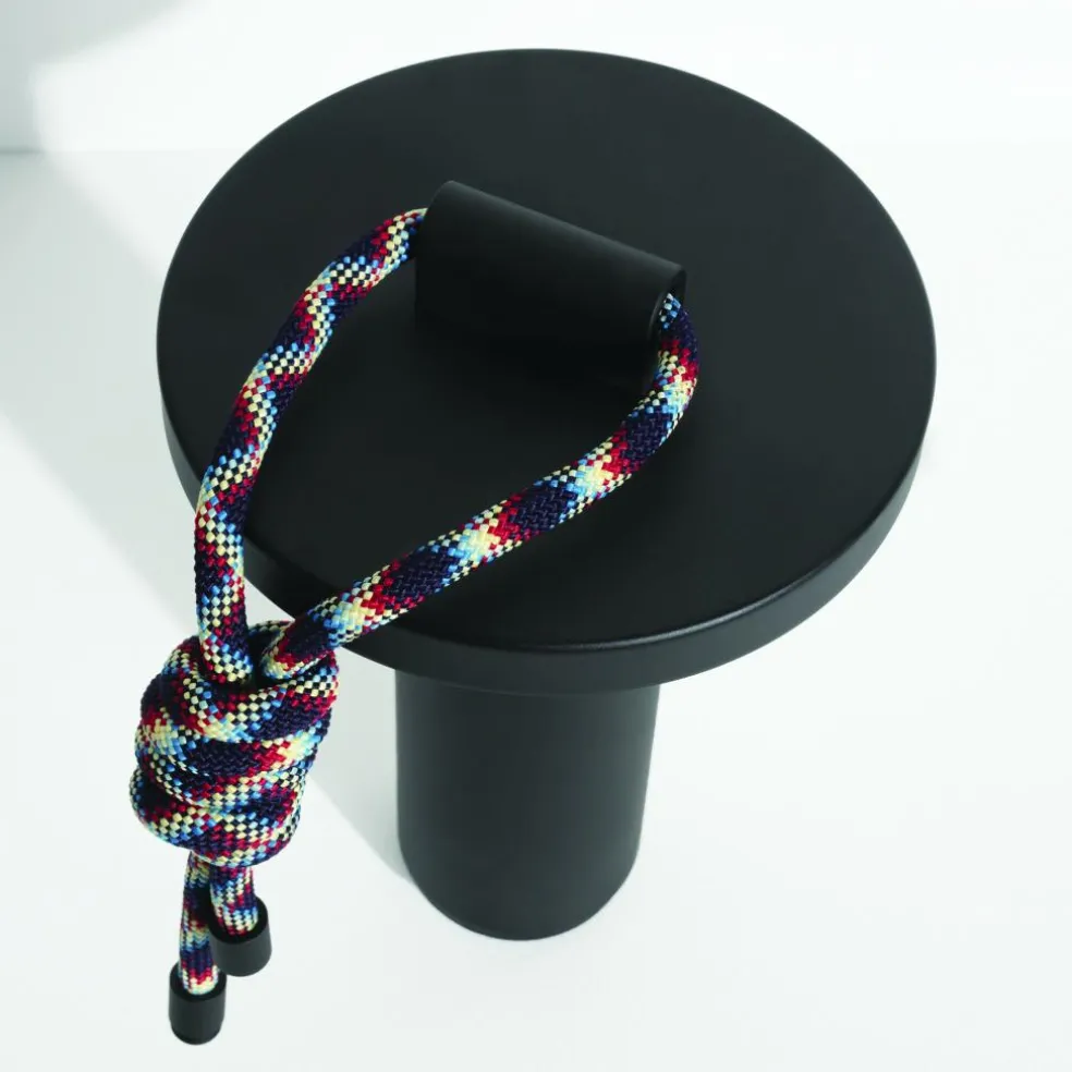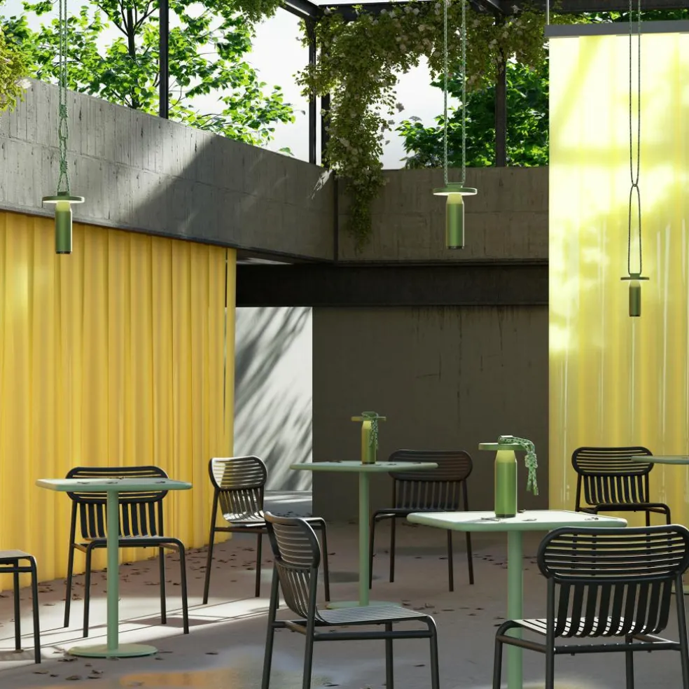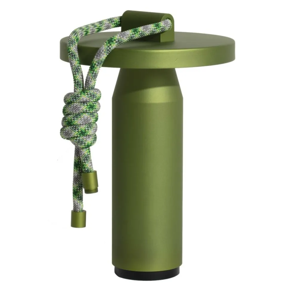 Inspiriert von den Formen von Bambusröhren besteht die Quasar LED Akkuleuchte aus geradlinigen Elementen. Sie hat eine zylindrische Basis, die sich im oberen Bereich kegelförmig verjüngt. Darüber sitzen die Leuchtmittel, abgeschirmt von einer runden Scheibe. Diese lenkt das Licht nach unten, wo es am Schaft der Quasar LED Akkuleuchte reflektiert wird. Ein Dimmer aus ABS unter der Basis erlaubt die Auswahl von drei Lichttemperaturen sowie Lichtintensitäten von 100%, 50% und 25%. So kann die Quasar LED Akkuleuchte im Garten intensiv strahlen oder indoor ein warmes und gedämpftes Licht abgeben. Bestehend aus korrosionsbeständigem Aluminium ist sie ein praktischer Reisebegleiter. Dank der UV-beständigen, 100 cm langen Polyesterschnur lässt sie sich per Knoten oder über die Metallverschlüsse an den Enden an einem Baum befestigen.
