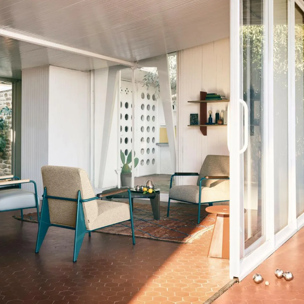 Das Rayonnage Wandregal wurde von Jean Prouvé für die Marke Vitra entworfen. Das Design mit seinen gekreuzten Elementen, die einfach an der Wand befestigt werden, ist ein Klassiker aus dem Jahr 1936, der erstmals in der École Nationale Professionnelle in Metz Verwendung fand.
