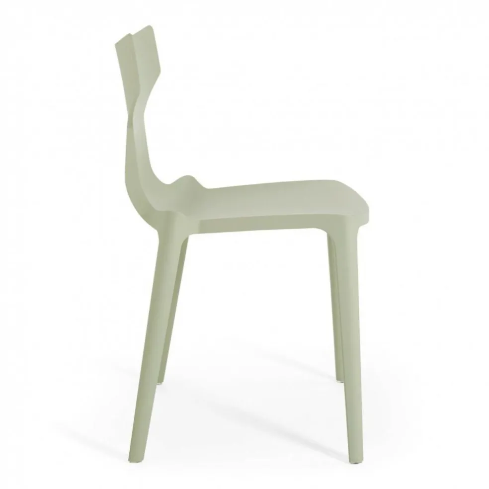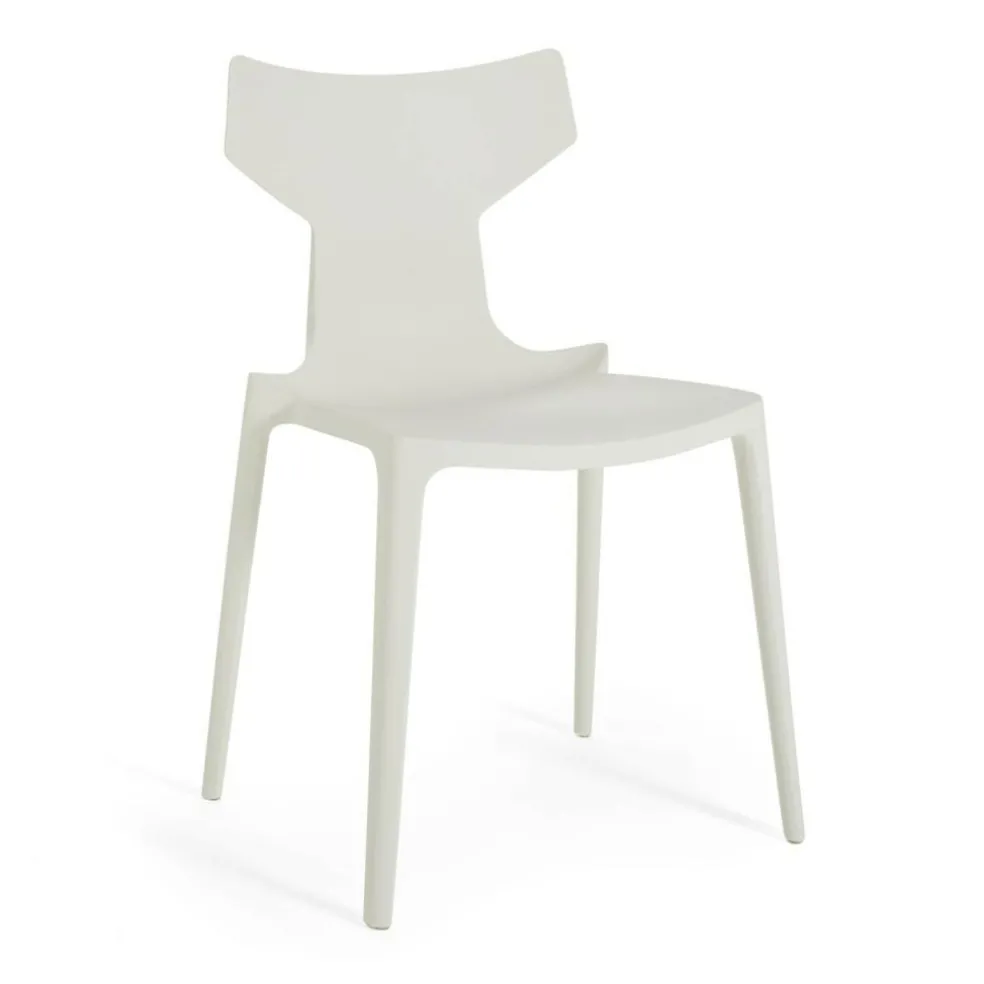 Der Re-Chair wurde von Antonio Citterio für die Marke Kartell entworfen. Das Re im Namen steht für recycelt. Der formschöne Stuhl wurde nämlich zu 100 % aus wiederverwendeten Materialen hergestellt. So entspricht er nicht nur in Bezug auf seine Verarbeitung dem Zeitgeist, sondern dank seiner klaren Linienführung ebenso äußerst modern.