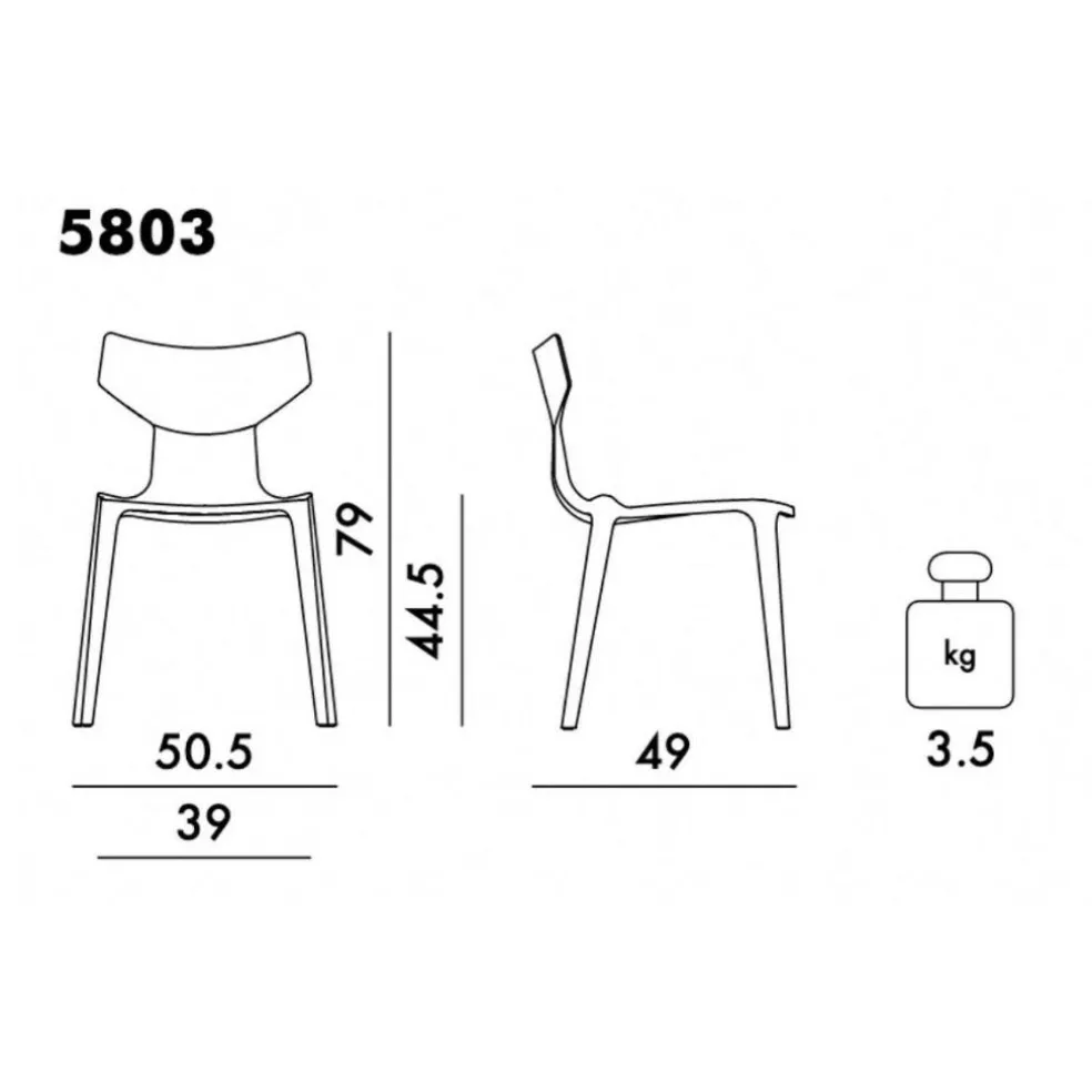 Der 3,5 kg schwere Re-Chair hat eine angenehme Sitzhöhe von 44,5 cm. Damit eignet er sich perfekt für jeden gängigen Esstisch. Das bequeme Sitzmöbel ist 50,5 cm breit, 79 cm hoch und 49 cm tief. Es passt bestens zu moderner oder als Akzent zu klassischer Einrichtung.