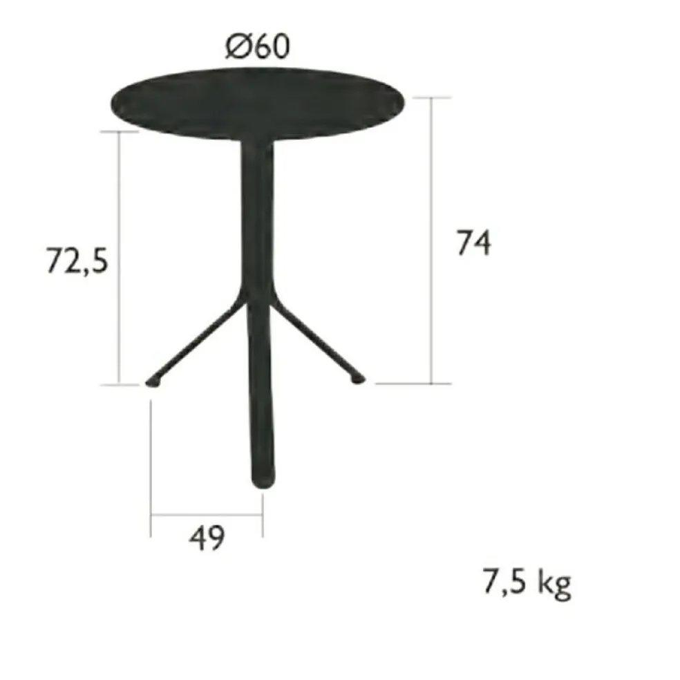 Die Tischplatte mit einem Durchmesser von 60 cm schafft eine praktische Ablagefläche für Geschirr, den Laptop, Zeitungen und viele andere Gegenstände. Mit seinem Gewicht von 7,5 kg kann er geöffnet oder zusammengeklappt gut transportiert werden. Der schlichte, 72,5 cm hohe Outdoortisch kann mit beliebigen Gartenstühlen kombiniert werden.